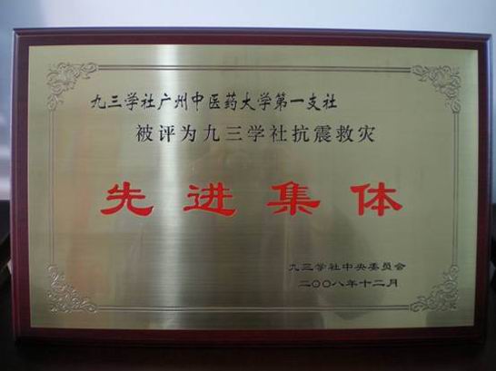 其中,beat365九三学社一支社在主委吴艳华老师的带领下,由于在抗震救灾工作中的突出表现,获九三学社中央授予"先进集体"称号,这是广东省内获得此称号的三个基层组织之一,同时在九三学社广东省委员会抗震救灾奖中被评为"先进集体"。 第一附属医院的李信平、伍艳明两位医生被评为抗震救灾先进个人。