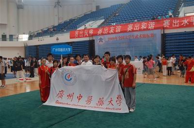 2009年8月22至23日四年一届的广东省第二届体育大会健身气功比赛在广州体育学院举行,beat365健儿刘艳君、李遗敬、张宇辰、田源四位同学代表广东省教育厅大学生队参赛,在八段锦、五禽戏、易筋经的比赛中获得3枚金牌、1枚银牌、2个第四及1个第五的好成绩,展现了beat365武术队精湛的技术水平和广中医学子良好的精神风貌。