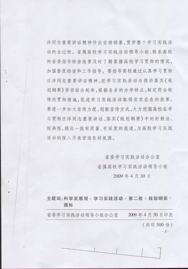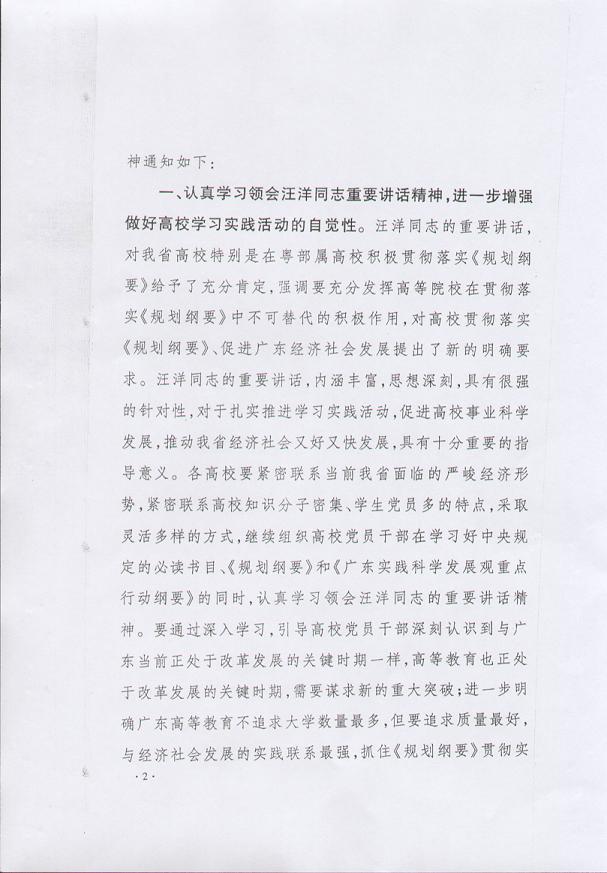 1、《关于在学习实践活动中认真学习贯彻汪洋同志在高校贯彻落实< 珠江三角洲地区改革发展规划纲要>座谈会上的重要讲话精神的通知》(粤学办发〔2009〕14号)