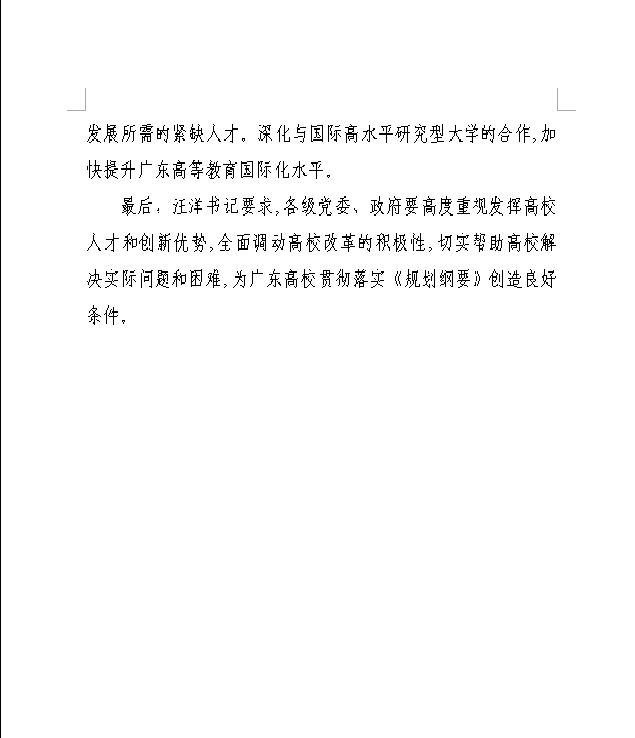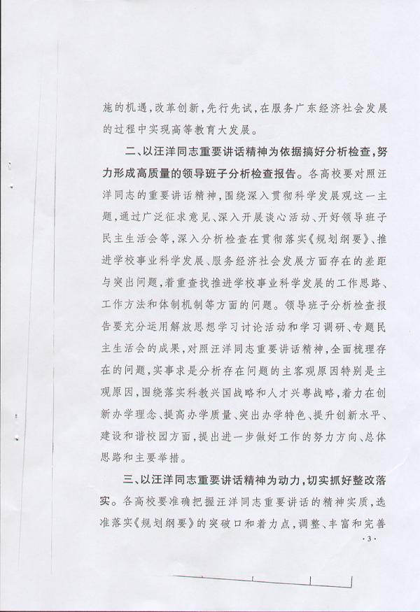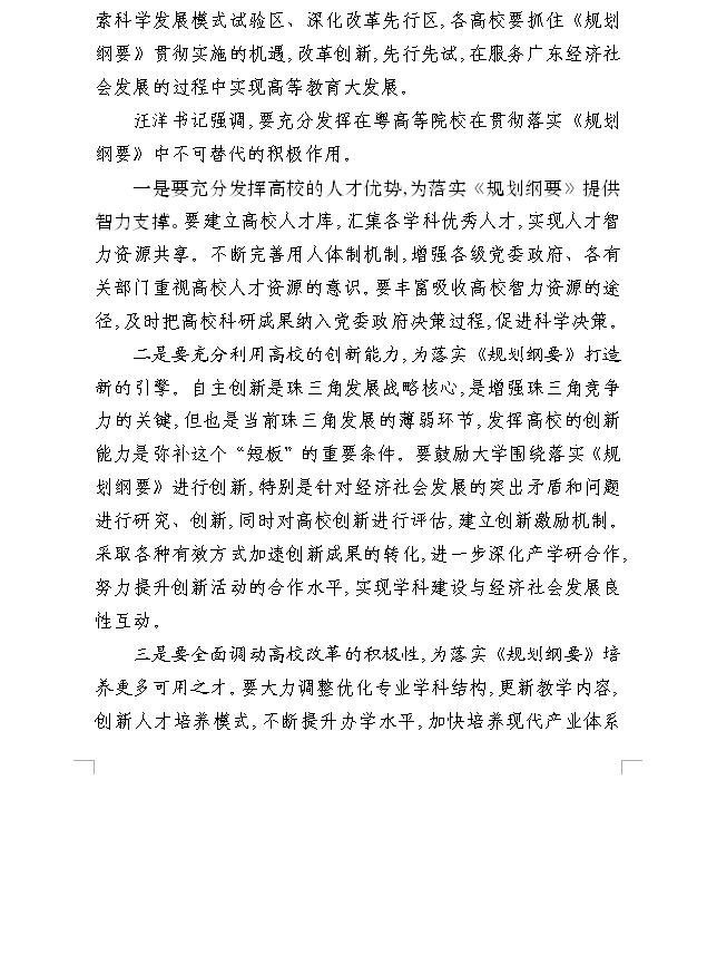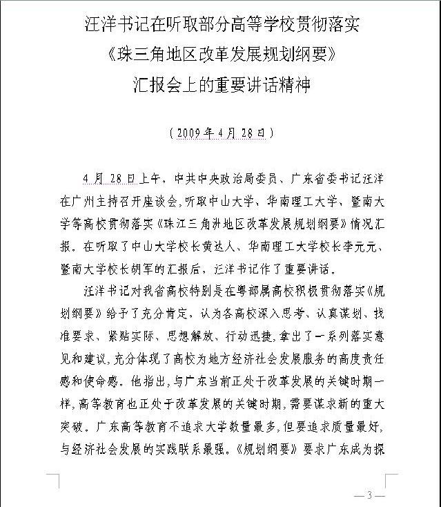 2、汪洋书记在听取部分高等学校贯彻落实《珠三角地区改革发展规划纲要》汇报会上的重要讲话精神