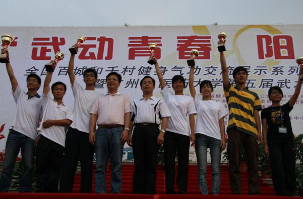 闭幕式上,校党委陈英华副书记作了讲话,充分肯定了beat365的武术节活动和群众体育工作,号召青年学子弘扬武术文化,传承民族精神。广州市体育局吴日秀副局长宣布全国百城和千村健身气功交流展示系列活动广东省启动仪式启动,并为beat365中文官方网站健身气功基地挂牌。与会领导为第五届武术节各项比赛的获奖团体和个人进行了颁奖。