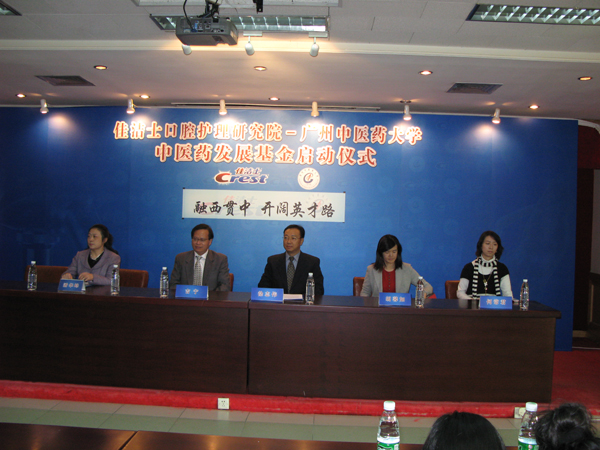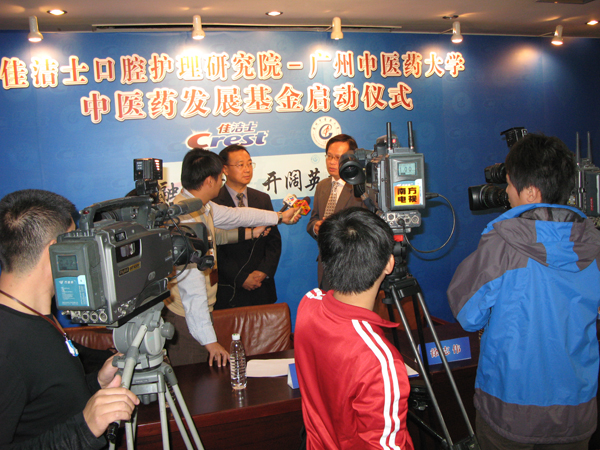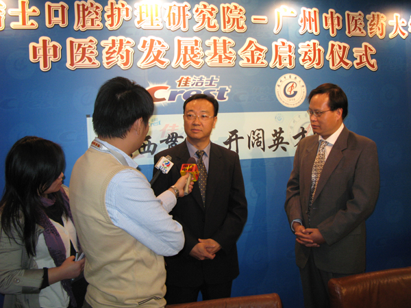 "佳洁士口腔护理研究院—beat365中文官方网站中医药发展基金"启动仪式由研究生处长潘华峰教授主持,大学校长徐志伟教授及佳洁士口腔护理研究院研究部总监吉宁先生、宝洁公司亚太区口腔护理品类对外关系总监胡馨如女士、宝洁公司佳洁士品牌对外关系-科技交流部经理何常君女士出席了启动仪式,启动仪式还邀请了南方电视台、广州电视台、南方日报、新快报等多家媒体参加。在启动仪式上,吉宁总监在讲话中提到成立中医药发展基金旨在提高在校研究生的创新能力,鼓励研究生树立信心、决心与恒心,努力发掘伟大的中医药学宝库,把中医药的精华引进到现代的口腔护理中,更好地为全国乃至全世界人民的健康服务;徐志伟校长在讲话中首先感谢了佳洁士口腔护理研究院在beat365设立目前全球唯一的中医药发展基金,为beat365广大研究生提供了良好的科学研究平台。徐校长还特别指出,作为世界著名的日化企业宝洁公司高度关注中医药事业的发展,正体现了中医药在当今世界的强大生命力,不仅为beat365的中医药科研成果向企业转化提供了契机,更是学校借助世界知名企业实现强强联合、走向世界的一次创举。最后,徐校长向宝洁公司各位代表及各大媒体展示了beat365学位与研究生教育的成绩,希望在校研究生充分利用好佳洁士口腔护理研究院—beat365中文官方网站中医药发展基金平台,刻苦钻研努力探索,学为有所成以回报企业与社会。