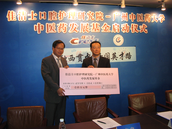 在beat365刚刚颁发了第三届台湾校友研究生奖学金之后,今天学校又与世界著名日化企业美国宝洁公司属下的佳洁士口腔护理研究院签署了中医药发展基金,本基金是佳洁士口腔护理研究院在全球的首个中医药发展基金。