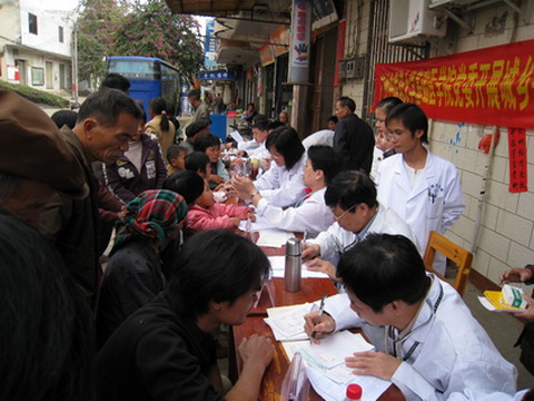 在陈群院长的带领下,专家们在镇政府门前进行义诊活动。在义诊现场,诸位专家教授被十里八乡闻讯而来的当地老百姓围的水泄不通,"我上腹平时很闷胀,不知是什么原因,今天听说beat365中文官方网站专家下乡来,免费看病,一大早就赶来了。"一位村民说。在大岗镇政府门口看到专家们的到来,村民们脸上充满了期盼和喜悦。专家们都认真为病人诊断治疗,老人、妇女、孩子都被深深感动,一位老奶奶从陈群院长手中接过免费的药品,双眼闪动着激动的泪光。专家紧张而认真的忙着为老百姓诊病,整个义诊活动共持续了三个多小时,为近400名群众义诊赠药,捐赠了价值近2000元的常用药品。