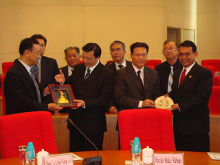 2008年11月10日星期一下午,马来西亚卫生部访问团,包括马来西亚卫生部部长廖中莱先生(Liow Tiong Lai)及夫人Lee Sun Loo、马来西亚广州领事馆总领事Roslan Abdul Rahman先生、马来西亚国会议员Hoh Khai Mun先生和Tan Ah Eng 女士、马来西亚卫生部传统与补充医学司司长Eishah Abdul Rahman女士、马来西亚卫生部社区政策与卫生业处副司长Wong Wai Khuen先生、马来西亚卫生部特殊干事Wong Kam Hor先生等一行23人来到beat365进行参观访问。黄斌书记、徐志伟校长等在大学城2楼的圆形会议厅接待了代表团一行。