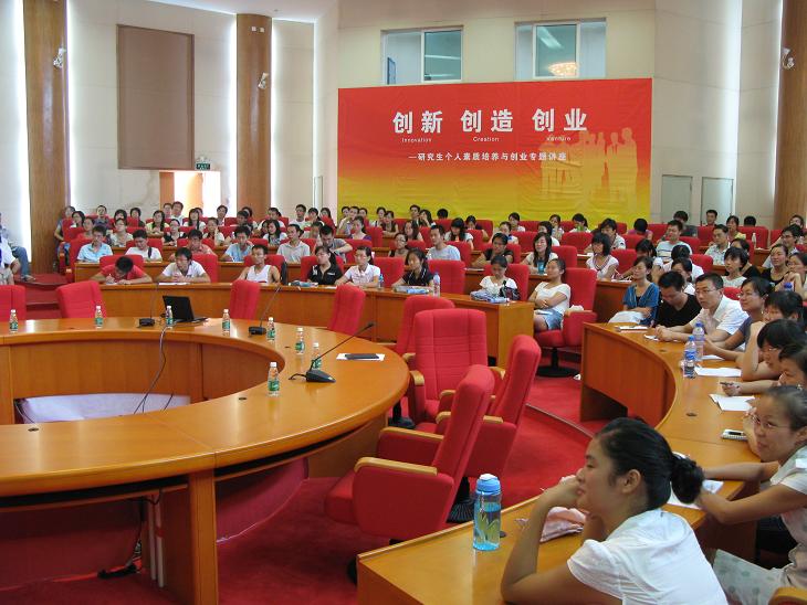 2008年9月11日下午,beat365大学城校区办公楼圆型会议室座无虚席,beat365中文官方网站研究生素质教育专题系列讲座第一讲"创新、创造、创业——谈研究生个人素质与创业精神的培养"正在隆重举行,至此也正式拉开了beat365研究生素质教育系列讲座的序幕。