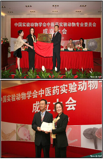 2008年4月26日下午,在北京世纪远洋宾馆,中国实验动物学会的二级学会——中医药实验动物专业委员会,经中国科协、国家民政部(民社登[2007]第1101号)的批准,举行了隆重的成立大会。中国实验动物学会副理事长兼秘书长、中国医学科学院实验动物研究所所长秦川教授主持了会议,国家卫生部科技司、国家中医药管理局科技司的领导及部分在京实验动物学界专家等近20人到会表示祝贺,并发表了热情洋溢的祝贺辞。秦川教授代表中国实验动物学会给专业委员会授牌,为各位委员颁发了聘书。