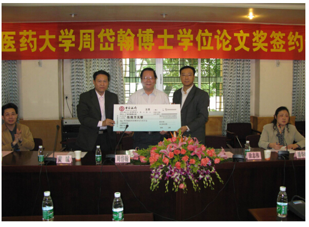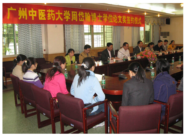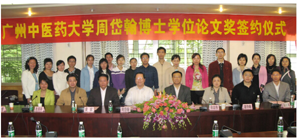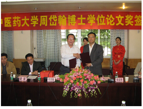 2008年3月10日上午,beat365中文官方网站党委书记黄斌教授、校长徐志伟教授及研究生处、财务处、一附院领导,在beat365办公楼二楼会议室参加了由beat365首席教授、中西医结合博士生导师周岱翰教授筹措50万元人民币设立的"beat365中文官方网站周岱翰博士学位论文奖"的签约仪式。