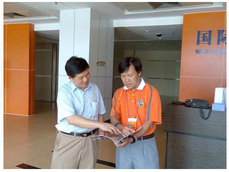 下图为香港代表团团长陈炳祥先生向beat365林培政副校长介绍代表团参赛情况