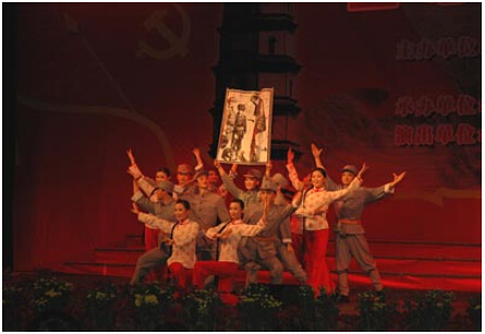 延安革命纪念馆延安精神宣讲团给宣讲晚会以"唱,讲,跳"的形式献上了一场精彩的晚会。晚会在喜庆欢腾的舞蹈《中央红军到陕北》拉开序幕,随后宣讲团成员声情并茂地讲述了一个个真实感人的故事:毛主席在延安土窑洞中宣扬马列主义,毛主席与其子毛岸英间的父子深情,一面褪了色的红旗见证了中国抗日军政大学的创立和成长等等,赢得台下学子热烈的掌声。期间穿插有宣讲团成员自编自演的歌舞节目,有富有陕北风情的歌舞《陕北民歌大联唱》和舞蹈《秧歌剧大串联》让观众重温了昔日红军在延安火热的生产、生活场景,双人舞蹈《当红军的哥哥回来了》、男女对唱《想亲亲》等则生动而亲切的形式歌颂了根据地军民的鱼水深情。扭起欢快的陕北秧歌,敲响喜庆的安塞腰鼓,宣讲晚会最后在舞蹈《拥军大秧歌》热闹温馨的气氛中圆满落下帷幕。