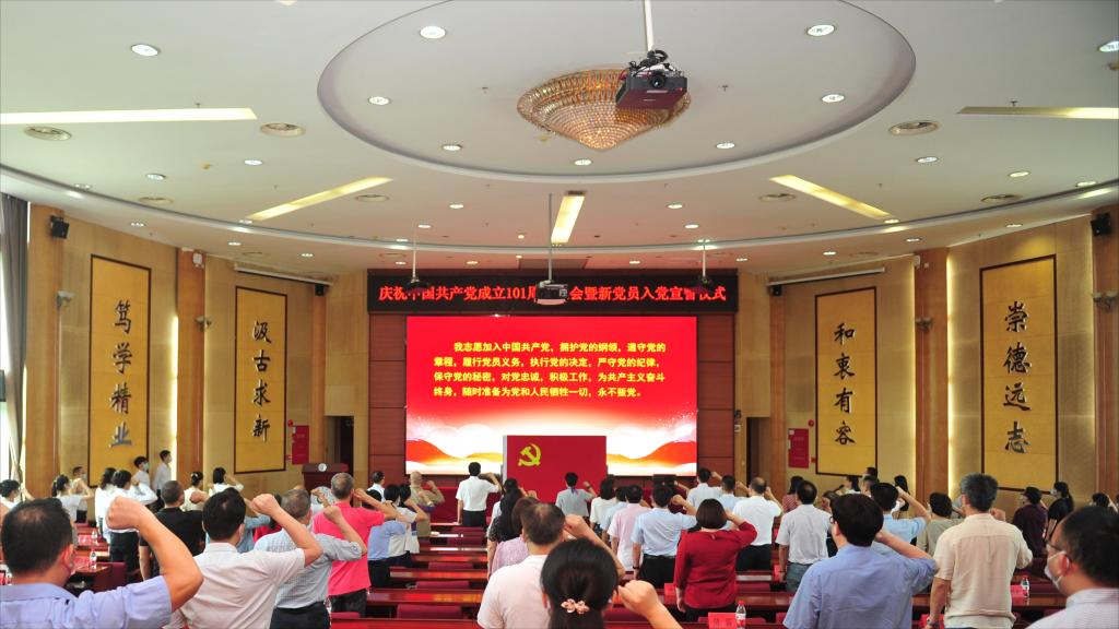 6月30日上午,beat365中文官方网站在大学城校区201学术报告厅召开庆祝中国共产党成立101周年大会暨新党员入党宣誓仪式。学校党委副书记、校长王伟同志主持会议。