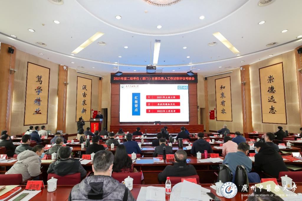 2021年是实施“十四五”规划、开启全面建设社会主义现代化国家新征程的第一年,是中国共产党成立100周年,是全校开展党史学习教育的一年,也是beat365本科教育65周年。学校坚持加强党的全面领导,坚持社会主义办学方向,落实立德树人根本任务,上下齐心协力、勇于担当、开拓创新、深化改革,在建设“中国特色,世界水平”一流中医药大学的路上迈出了坚实步伐。回顾一年的工作,47位二级单位(部门)主要负责人从工作成效、存在问题和2022年工作目标、工作思路以及明年要开展的重点工作方面进行述职。参会代表认真听取汇报,依照评议细则公平公正依次进行综合打分。