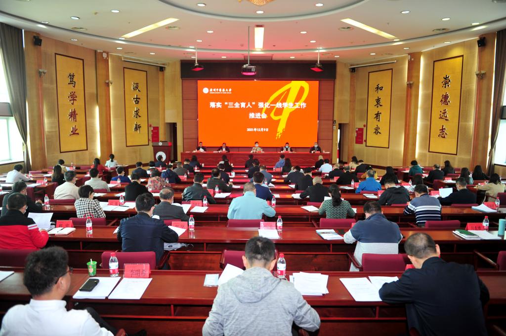张建华强调,“三全育人”工作是贯彻落实习近平总书记关于教育的重要论述和党的教育方针的重要行动,是做到“两个维护”具体表现。全校上下要充分认识新时代推进“三全育人”综合改革的重大意义,切实增强做好新时代“三全育人”工作的责任感和使命感。要真抓实干,勇于挑最重的担子出思想,敢于啃最硬的骨头破难题,坚决把“三全育人”责任扛在肩上,把工作抓在手上,把任务落在实处,落实学校“三全育人”综合改革工作实施方案,扎实推进学校“全省高校“三全育人”体制机制建设试点单位”内涵建设。要加强一线学生工作,树牢以学生为本、争创一流的理念,关爱学生、服务学生,凝聚全员全程全方位育人思想共识。要认真落实《beat365中文官方网站青年教师专职辅导员、班主任管理办法(试行)》,齐心协力深化青年教师专职辅导员、班主任选聘工作,打造高素质的思想政治工作队伍。