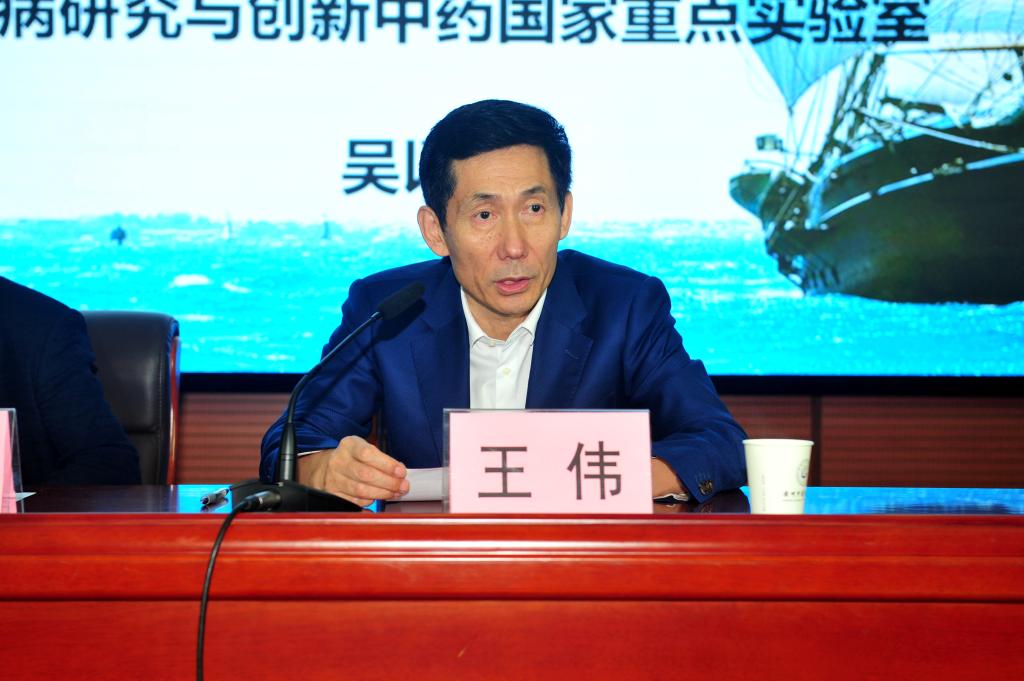 王伟校长致欢迎辞,他介绍了吴以岭院士在科技创新领域的卓越成就,特别提到吴院士是中医界理法方药系统创新的第一人,他创立的“理论—临床—新药”一体化发展模式,对推动中医药学术发展与现代化做出了重要贡献,并代表beat365对吴院士的到来表示衷心的感谢。