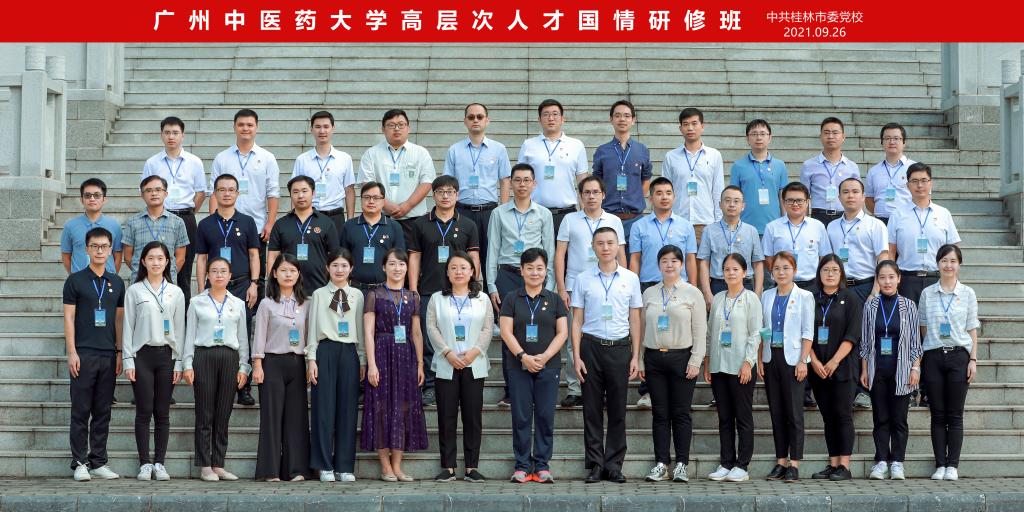 9月23日至27日,参训学员在广西百色、桂林学习了习近平总书记“七一”重要讲话精神、中国共产党百年奋斗历程等专题课程,先后到百色起义、湘江战役等革命历史遗迹和场馆进行现场学习,并参观了乡村振兴与基层治理示范村-毛竹山村。期间,学员们进行了两次专题交流研讨,王宏斌副校长在第一次研讨中解读了中医药特色发展的相关政策精神,结合学校发展实际,重点分享了学校在人才培养等方面的举措和成效;在第二次研讨中,各小组重点讨论了团队建设落地融合、人才评价体制机制两个议题,并进行了小组汇报。