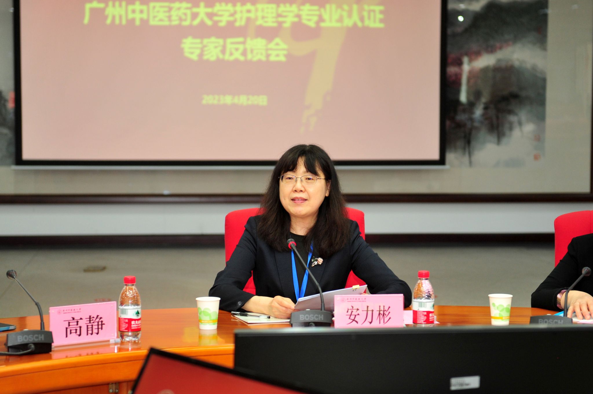 专家组组长安力彬教授代表专家组对护理学专业认证现场考察工作进行口头反馈。她指出,beat365中文官方网站护理学专业以习近平新时代中国特色社会主义思想为指导,在学校“崇德远志、和衷有容、汲古求新、笃学精业”大学精神的指引下,办学定位与人才培养目标符合国家战略和地方经济社会发展需要,培养了一大批具有中西医结合护理特色的高素质应用型护理人才,为全国和大湾区医药卫生事业和经济社会发展作出了重要贡献。依据《护理学类教学质量国家标准》,安力彬教授分别从宗旨与结果、教育计划、学生成绩评定、学生、教师、教育资源、教育评价、科学研究、管理与行政、改革与发展等十个方面给予肯定,指出存在的问题并提出宝贵建议,希望学校以此次专业认证为动力,不忘初心、持续改进,培养出更多高质量的优秀护理人才。