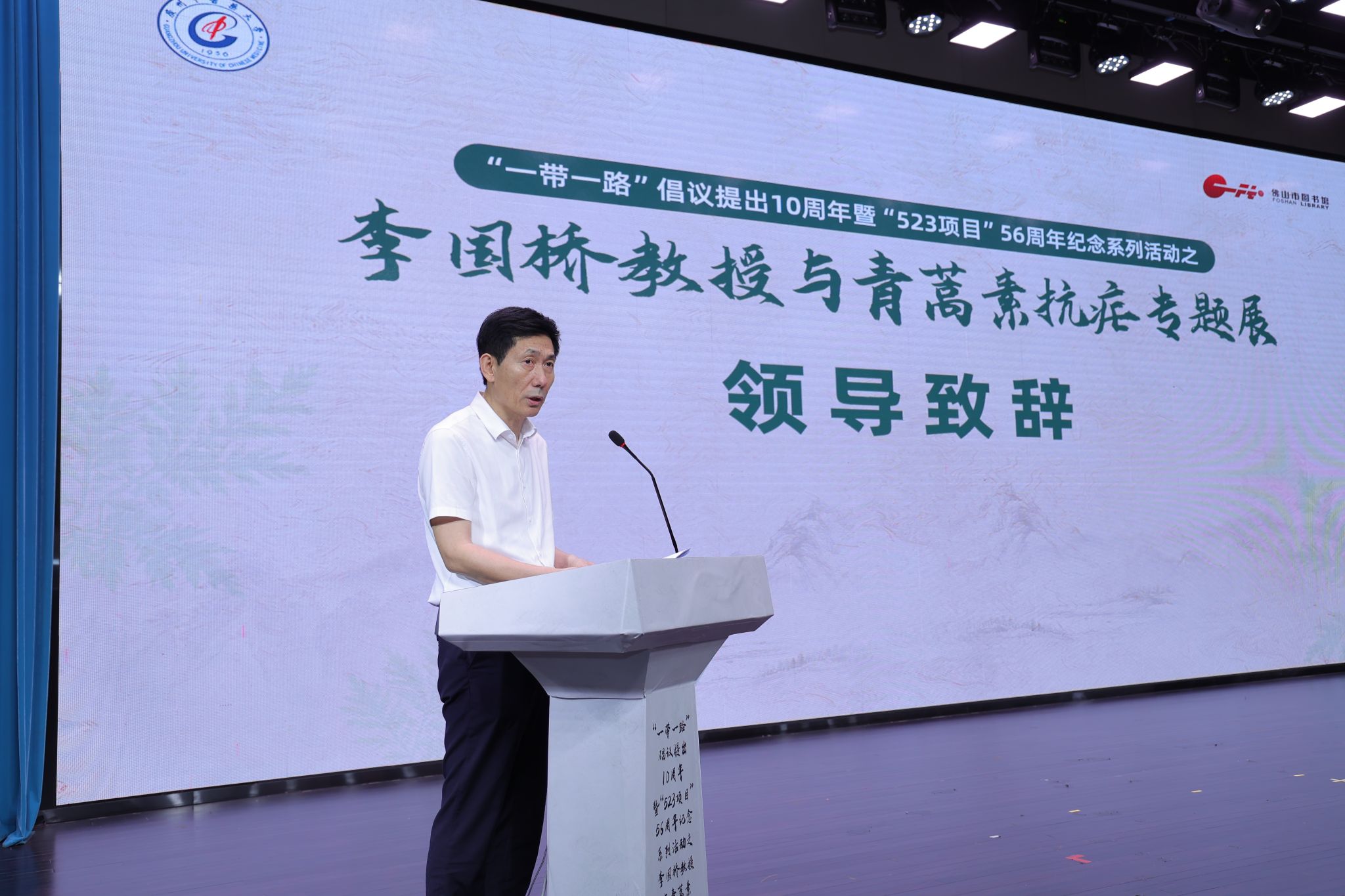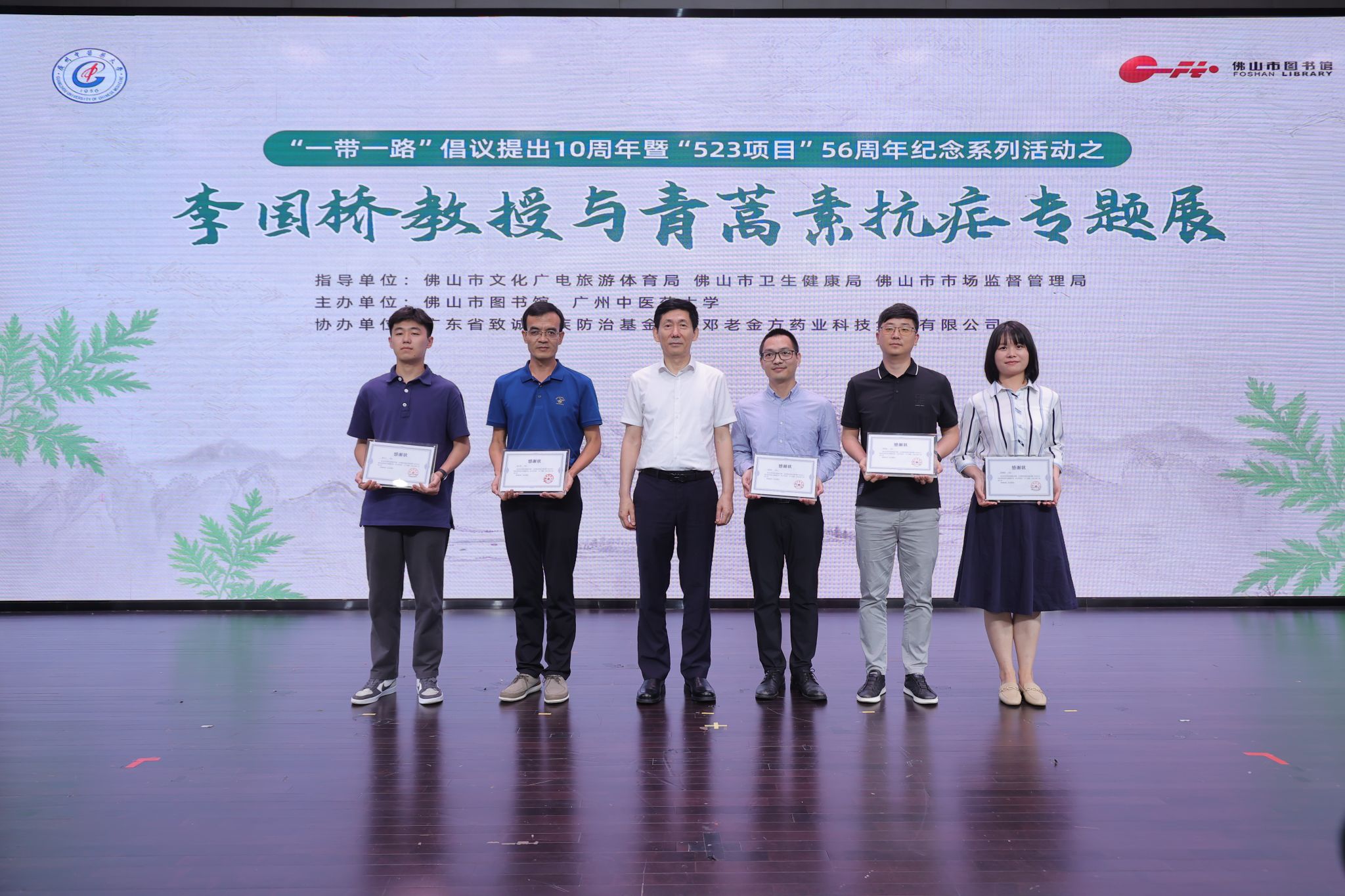 5月23日下午,在佛山图书馆beat365与该馆共同举办“李国桥教授与青蒿素抗疟专题展”纪念“一带一路”倡议提出10周年暨“523项目”56周年,展示老一代中医药科学家李国桥教授和其团队在青蒿素防治疟疾的临床研究中做出的努力和取得的突出成果,尤其在国际医药卫生交流方面做出的杰出贡献。beat365中文官方网站校长王伟,佛山市卫生健康局党组书记练凌东以线上、线下方式参加纪念活动并致辞。王伟校长为常驻国外3年以上的5位青年援外人员颁发了感谢状。学校党委副书记邱亚洪主持纪念活动。