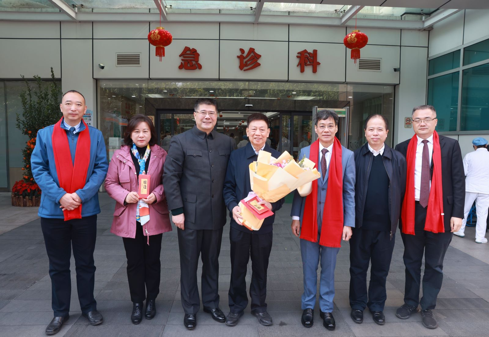 2月10日,甲辰龙年初一,学校党委书记陈文锋率队深入一线,走访两校区、附属医院、地铁和科创中心施工工地等,向春节期间坚守工作岗位的教职员工、医护人员、后勤保障人员、施工人员表达亲切慰问,送上新春祝福。副校长林彬、刘中秋、王宏斌参加慰问,督查办、党委组织部、党委宣传统战部、校长办公室、财务部、保卫部、总务后勤部负责同志陪同慰问。