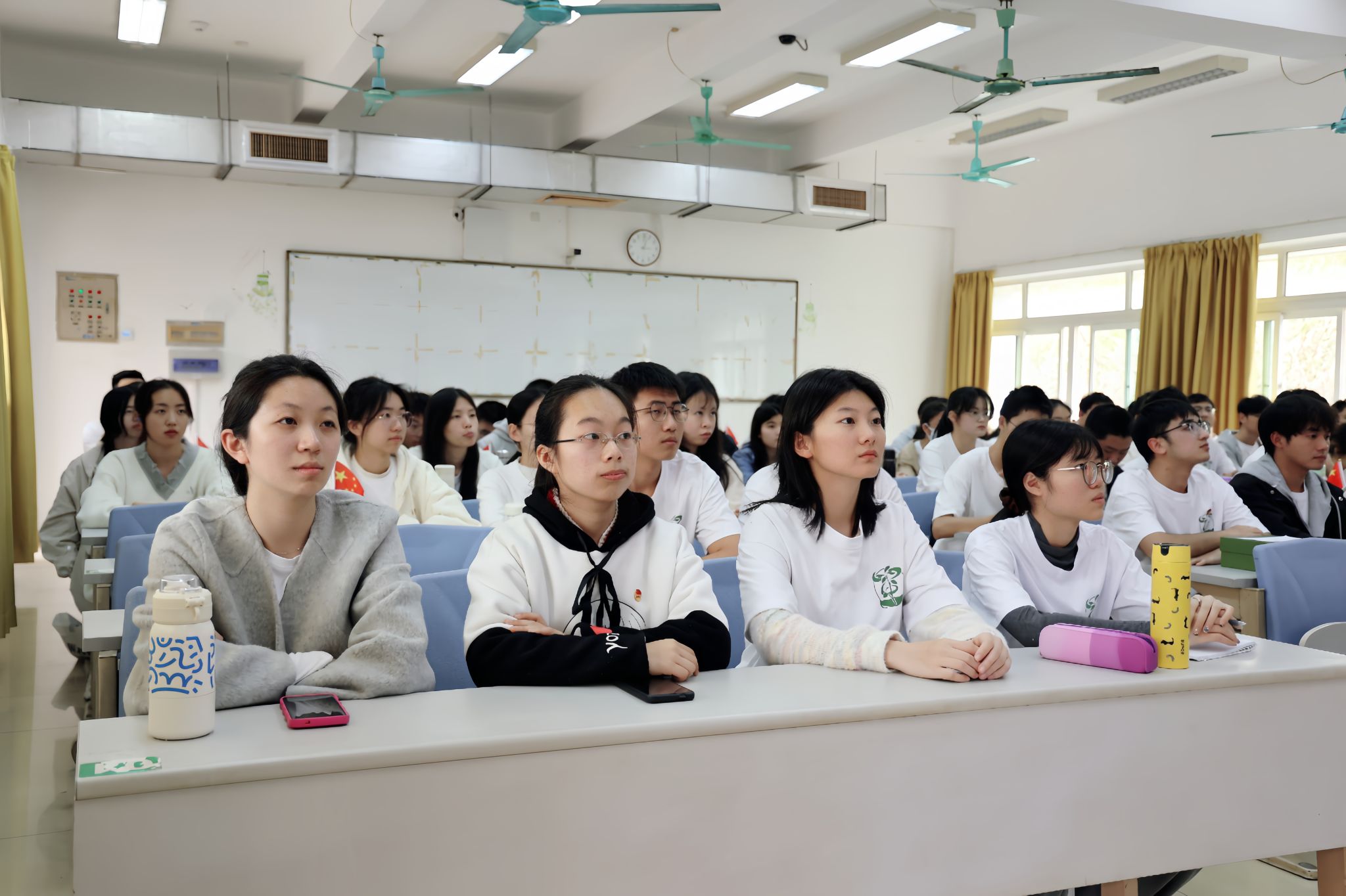 课上,陈文锋围绕青年、教育强国、中医药振兴发展三个关键词,以丰富的理论和鲜活的案例相结合,教导同学们进一步深刻领会党和国家对青年的殷切期待与希望,解读分析当前世界处于百年未有之大变局,强调了培育发展新质生产力、实现高质量发展对科学技术与优秀人才的需求比以往任何时候都更为迫切,指出当前是中医药事业振兴发展的最好历史时期,带领同学们纵览学校百年建校历史,列举了学校培育的名医大师,强调学校和一代代广中医人始终与国家、民族同呼吸、共命运,用仁心仁术与铮铮铁骨扛起中医药事业发展的大任,接续奋斗,前赴后继,走出了一条建设“中国特色,世界水平”一流大学的奋斗之路。