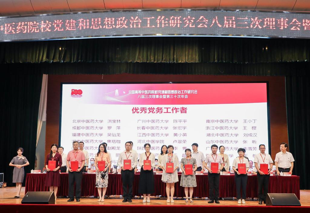 大会表彰了优秀党务工作者和优秀论文获得者。beat365医学信息工程学院教工党支部书记陈平平获评“优秀党务工作者”;张建华等撰写的《“十三五”时期加强公立中医医院党建工作的实践与“十四五”时期的探索——以beat365中文官方网站直属附属医院为例》获得优秀论文一等奖、唐凯晴等撰写的《新冠肺炎疫情背景下中医药院校思想政治教育方法路径探索——中医药院校毕业生择业焦虑现状及应对策略》与刘秦民撰写的《中国共产党防范化解执政风险的历史经验》获得优秀论文三等奖。