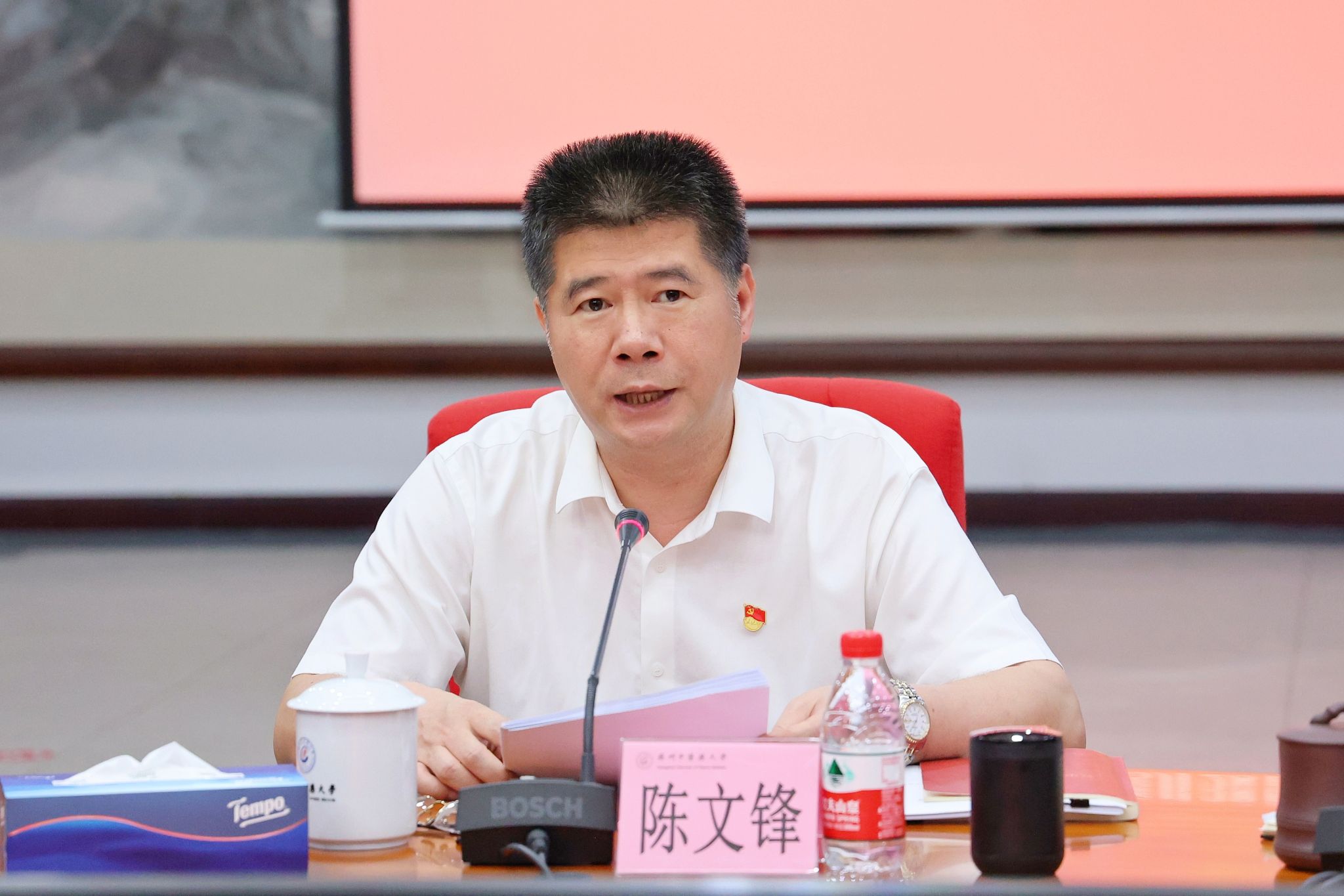 5月28日下午,2024年统战工作调度部署会暨党委理论学习中心组学习会在大学城校区办公楼101会议室召开,深入学习贯彻习近平总书记关于做好新时代统一战线工作的重要思想,专题学习《中国共产党统一战线工作条例》,不断增强做好新时代统战工作的责任感和使命感。学校党委书记陈文锋主持会议并讲话。