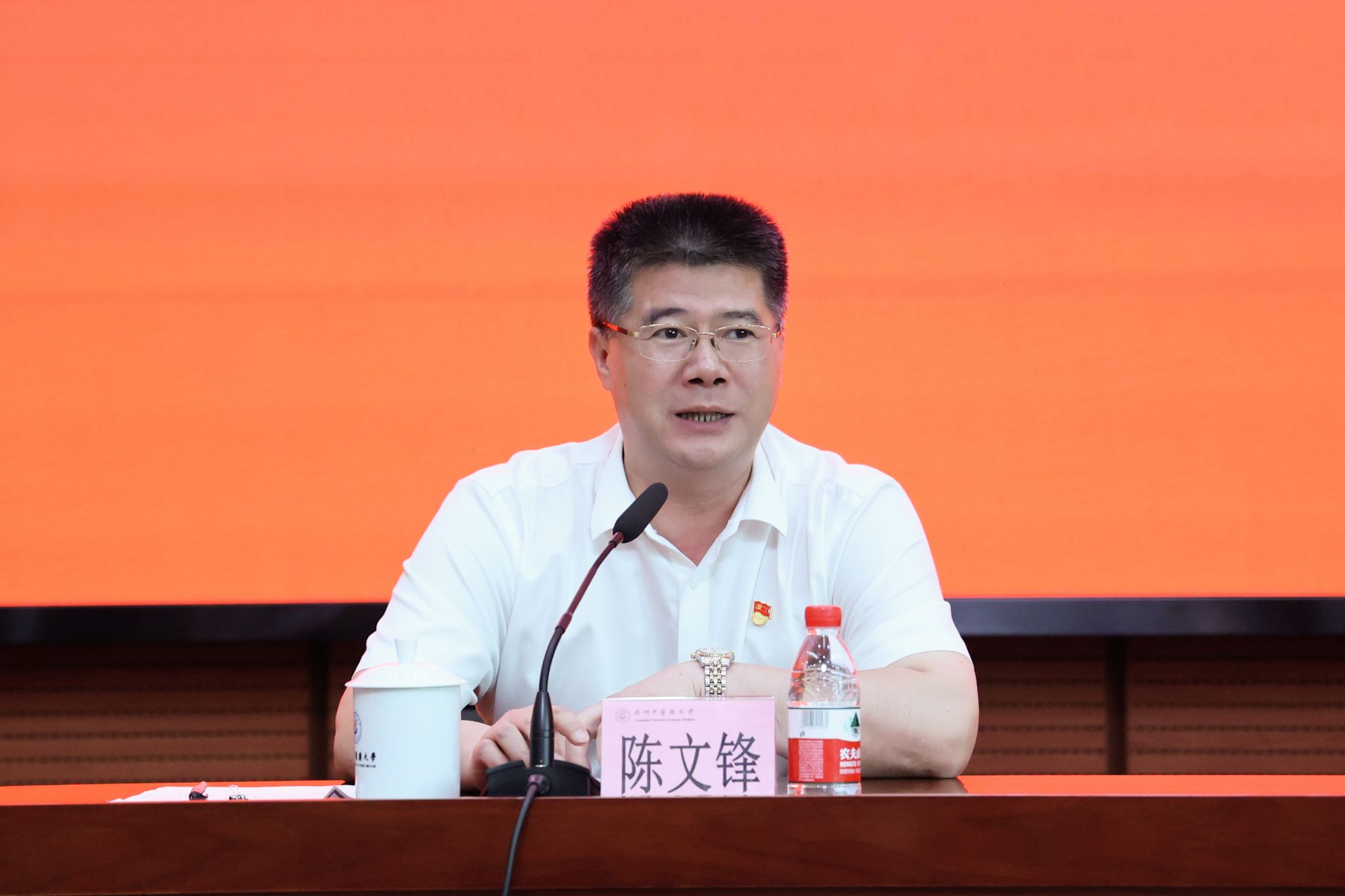 陈文锋强调,党的十八大以来,习近平总书记坚持“两个结合”,就全面加强党的纪律建设作出一系列重要论述,创造性提出一系列新思想新观点新论断,科学回答了什么是党的纪律规矩、为什么要加强党的纪律建设、怎样加强党的纪律建设等重大理论和实践问题,构成了总书记关于党的建设的重要思想、关于党的自我革命的重要思想的“纪律建设篇章”,为全面加强党的纪律建设、推动全面从严治党向纵深发展提供了根本遵循。开展党纪学习教育,首要任务是学习贯彻习近平总书记关于全面加强党的纪律建设的重要论述精神,深刻把握其科学内涵和实践,更好地将思想和行动统一到总书记、党中央的决策部署上来。全校党员干部特别是领导干部要在学思践悟中深刻领会把握党的纪律规矩的丰富内涵,在学思践悟中深刻领会把握加强党的纪律建设的重大意义和方法路径,在遵规守纪中主动担当作为。