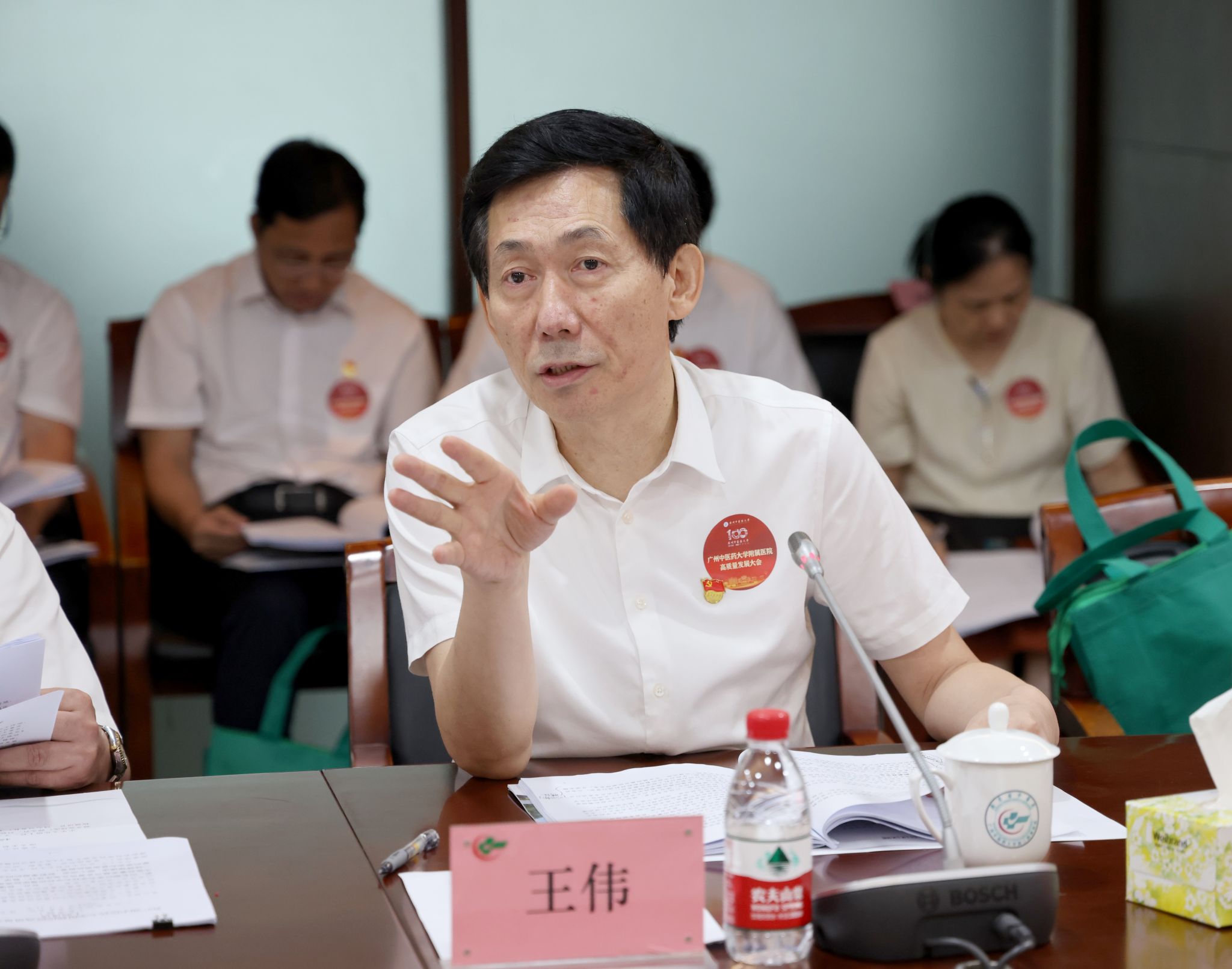 学校党委副书记、校长王伟在讲话中就找准建设目标和发展路径,推进大学医院高质量发展提出三点意见。一是要深刻认识建设大学附属医院、临床医学院的重要性,进一步增强推进高质量发展的责任感、紧迫感和使命感。进一步增强信心,坚持大学医院的角色定位和发展格局,准确把握医疗服务水平、影响力和辐射力持续提升的良好态势,以高度的责任感、使命感和紧迫感,加快推动高质量发展,形成实力雄厚、特色鲜明、机制灵活的强大的医院矩阵,为推动粤港澳大湾区中医药高地建设作出更大贡献。二是要准确把握附属医院、临床医学院高质量发展的形势及目标任务。附属医院和临床医学院在中医特色优势发挥上还需进一步提升,在运营效率精细化管理上还需进一步提高,在科研创新、成果转化上还需进一步加强,采取有力措施逐一加以解决,努力开创大学医院发展新局面。三是要推进附属医院、临床医学院高质量发展的重点工作。加强顶层设计,坚持改革创新引领附属医院高质量发展。完善医教研一体化机制,推动协同而充分发展。加强人才队伍建设,全面提升临床学科专科水平。加强内部治理,推动规范化管理和健康发展。坚持“以服务社会为己任”,在担当贡献中实现医院价值。加强医院文化建设,全面提升附属医院软实力。