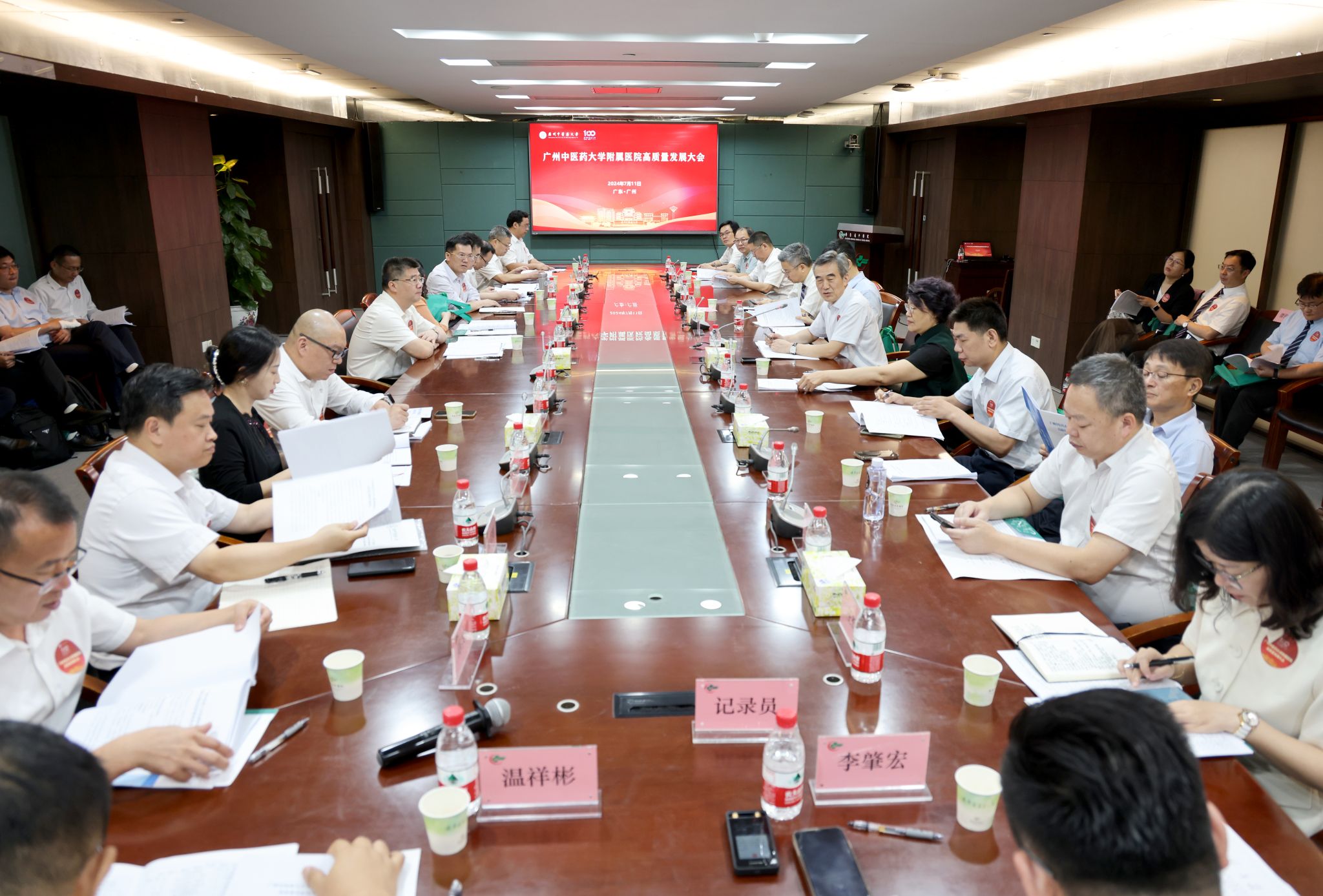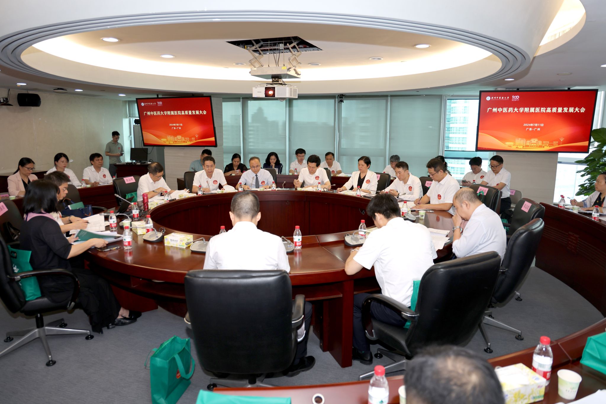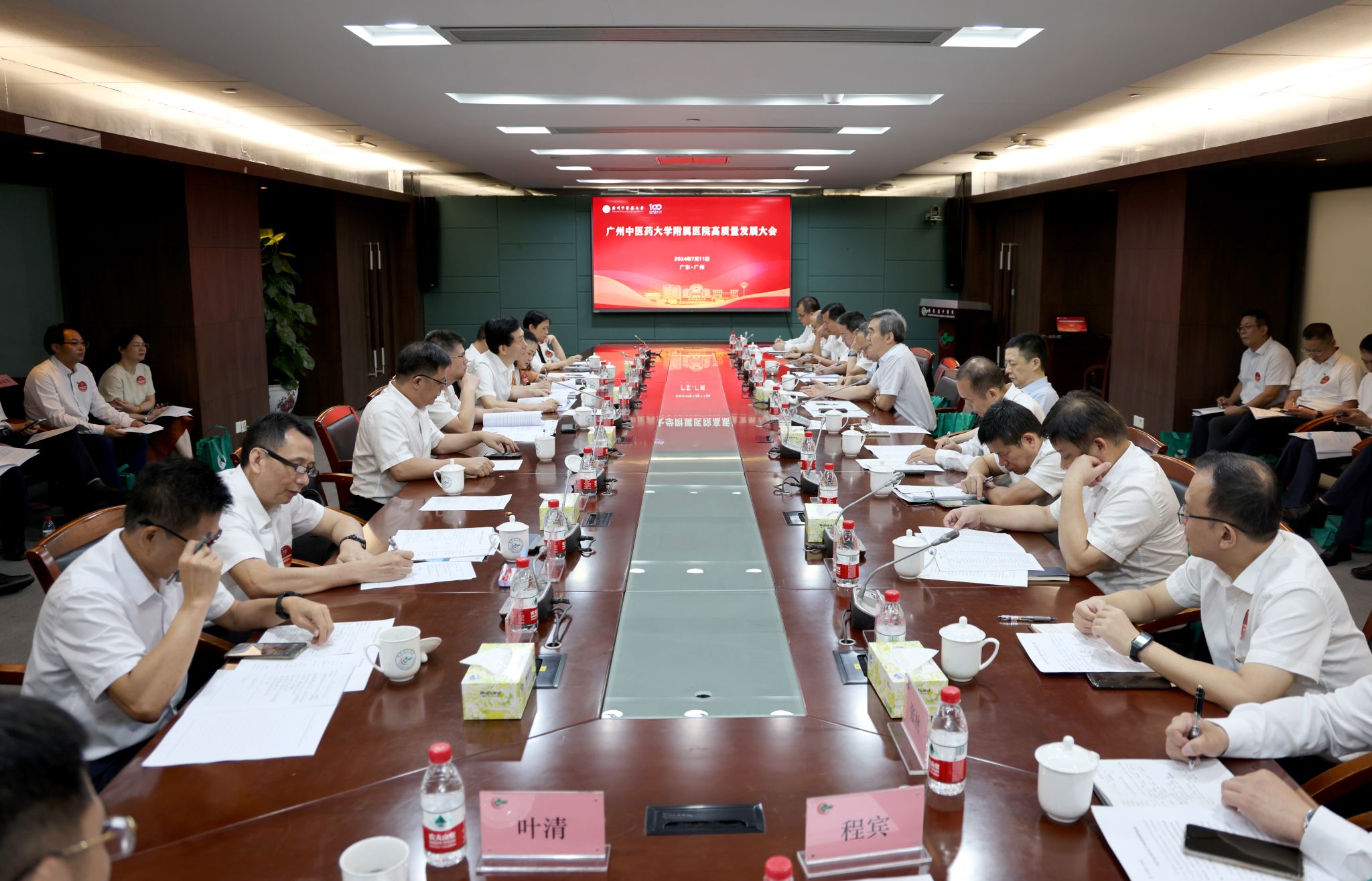 他要求,要坚持实干实绩导向,抓好政策落实落地,激励创优争先,聚焦服务国家重大战略,服务地方经济社会发展,为各附属医院的医教研发展提供支撑,共同聚力聚焦教学、科研、学科及临床诊疗提升建设,携手并进、再创辉煌,坚决扛起广东全面推进新一轮中医药强省、粤港澳大湾区中医药高地和国家中医药传承创新发展示范区建设的使命担当,奋力写好中国式现代化建设广东新篇章的广中医一笔,以优异成绩向新中国成立75周年致敬,向学校百年校庆献礼。