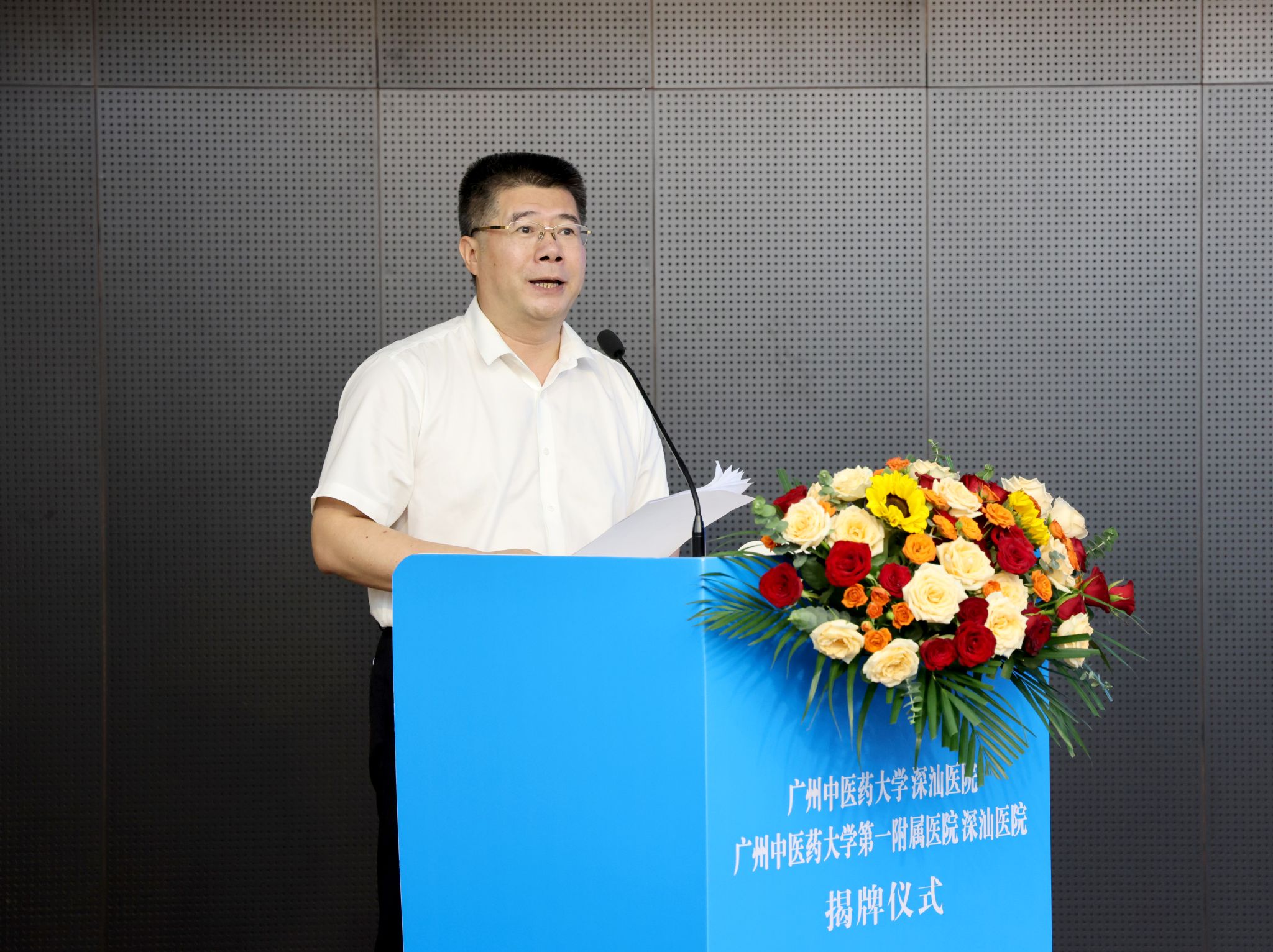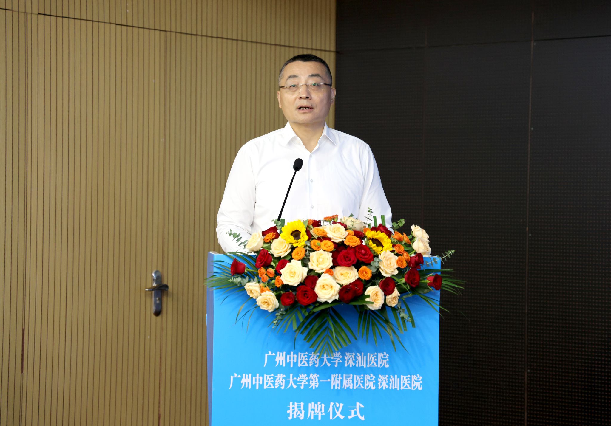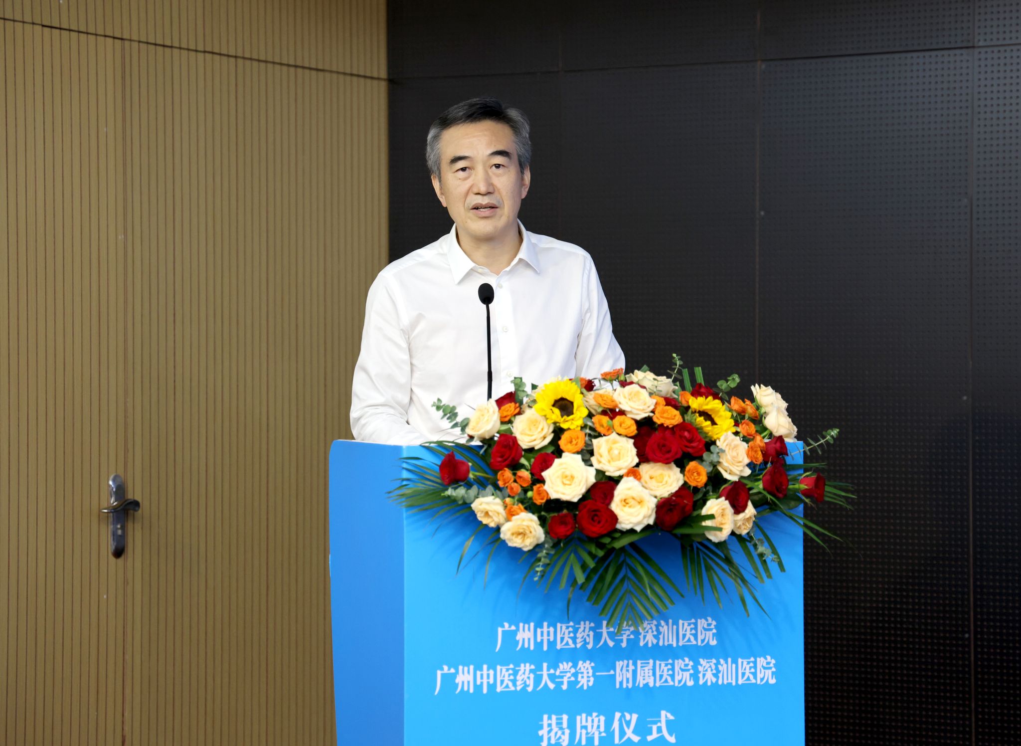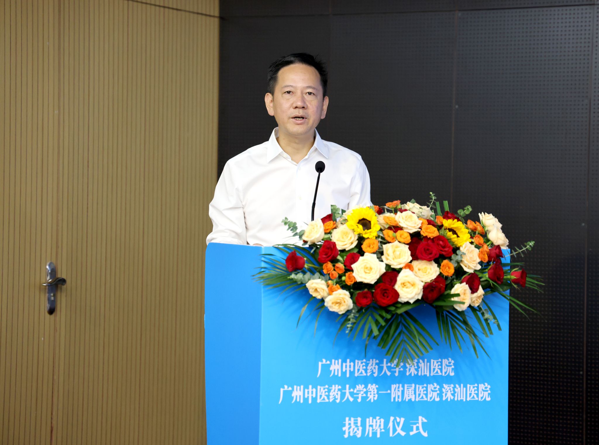 汕尾市委书记、市人大常委会主任逯峰,市委副书记、市长郑海涛,省卫生健康委二级巡视员符显辉,省中医药局副局长柯忠,深圳市卫生健康委副主任黎杰运,大学副校长刘中秋,第一附属医院院长李俊等领导出席揭牌仪式。会议由市长郑海涛主持。
