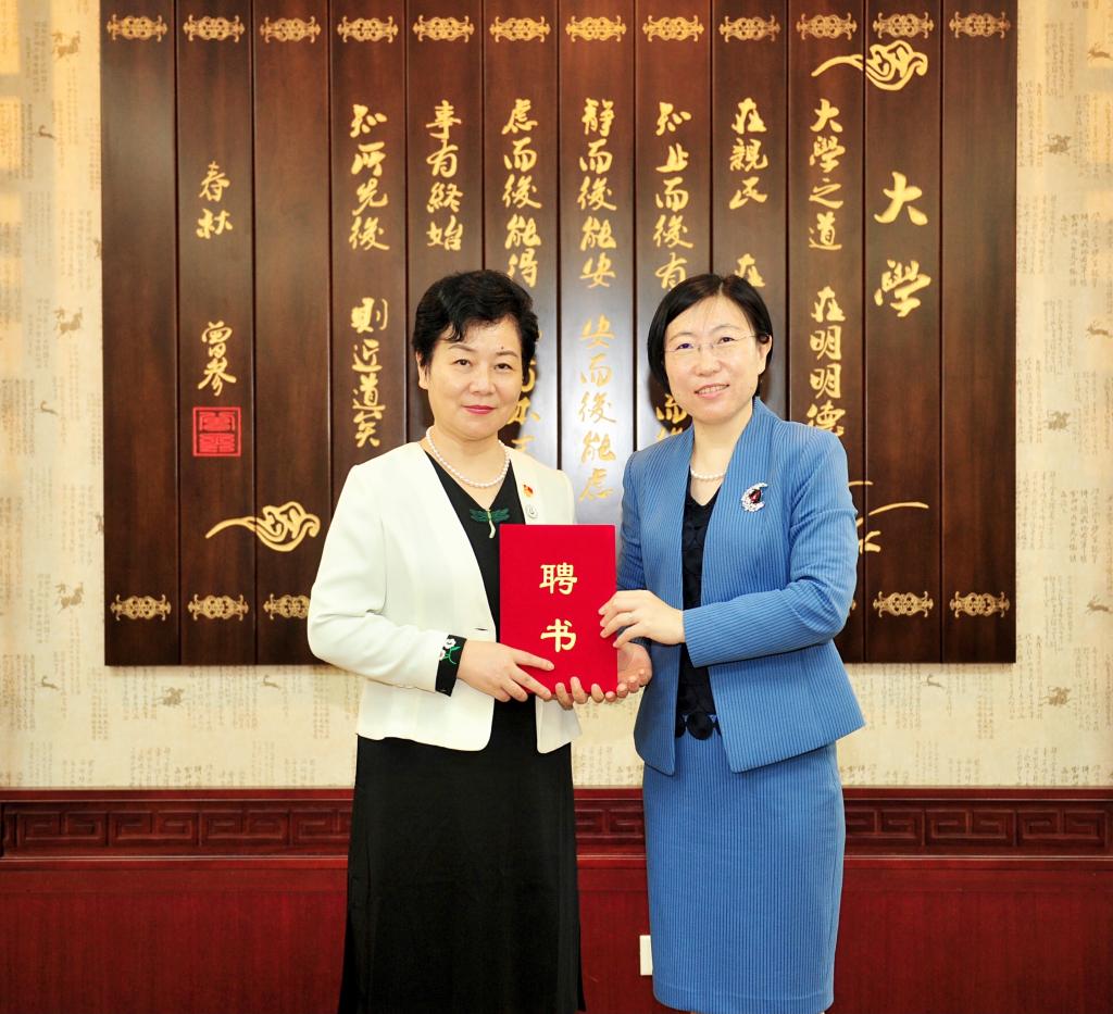 张丽副主席对学校工会和女职委工作表示肯定,对学校在抗疫期间做出的贡献表示赞赏,同时感谢学校党委对工会工作的指导和支持,代表广东省总工会向张建华颁发省总工会七届女职委顾问聘书。