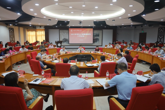 4月22日, beat3652021年学生心理健康教育工作会议在大学城校区召开,学校党委书记张建华出席会议并讲话,学校党委副书记邓国安主持会议。