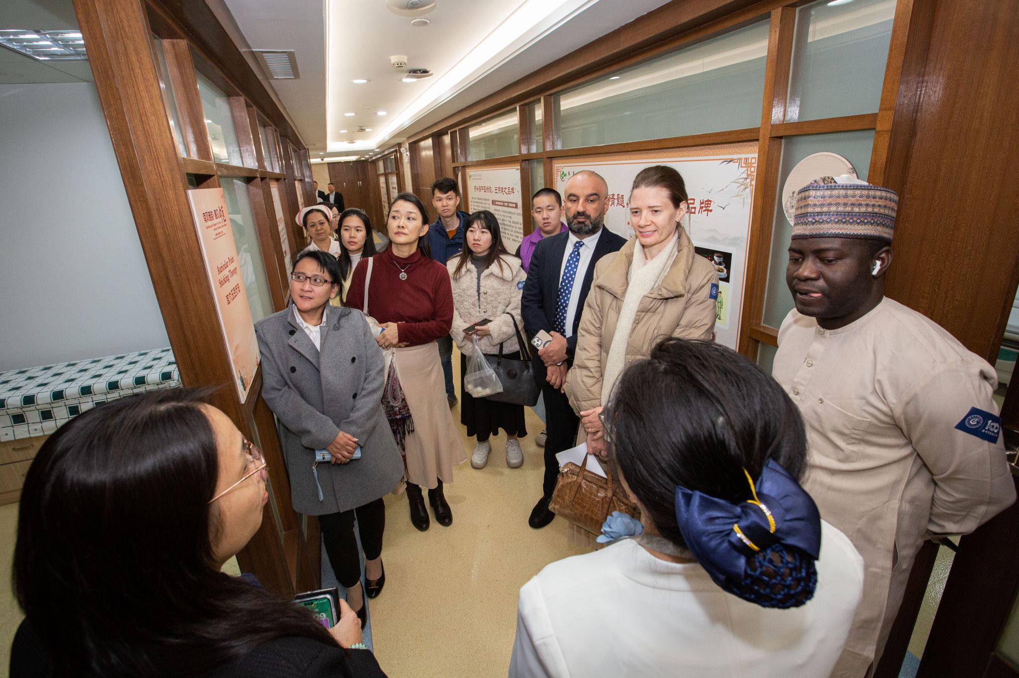 为加强中外文化交流,在中国传统节日冬至前夕,12月19日下午,“南风雅韵·遇见中医”第二期活动在第二附属医院(广东省中医院)大学城医院举办。学校党委常委、副校长郭鸿,第二附属医院(广东省中医院)党委副书记谭利斌,与来自12家外国驻穗总领馆的17位官员和家属出席活动。