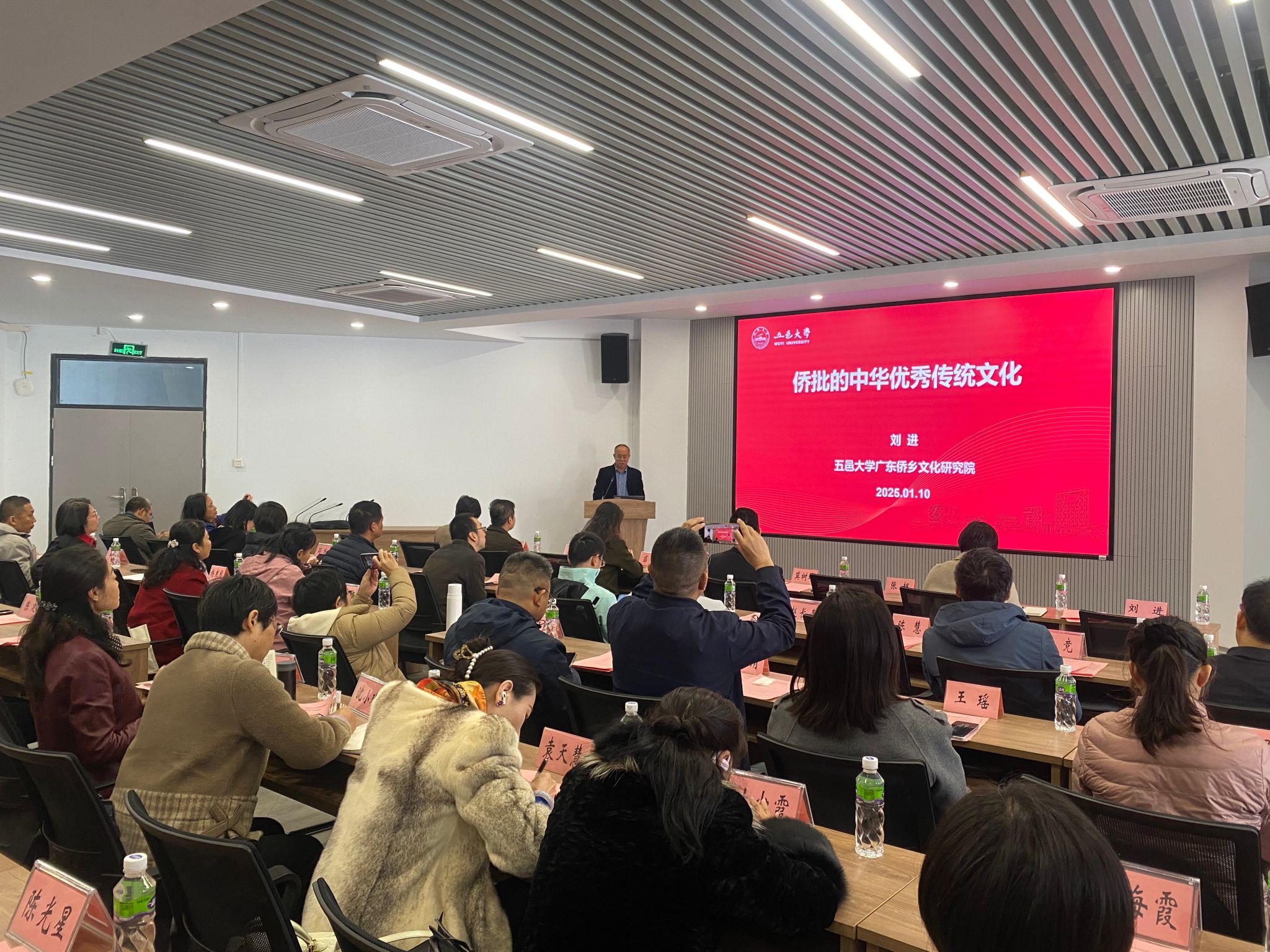 本次培训班采取专题讲座与现场教学相结合的方式。培训班紧紧围绕深入学习贯彻习近平新时代中国特色社会主义思想,特别是习近平总书记关于做好新时代党的统一战线工作的重要思想,邀请五邑大学广东侨乡文化研究院院长刘进教授作《侨批的中华优秀传统文化》专题讲座,对侨务工作、岭南文化等进行现场教学。