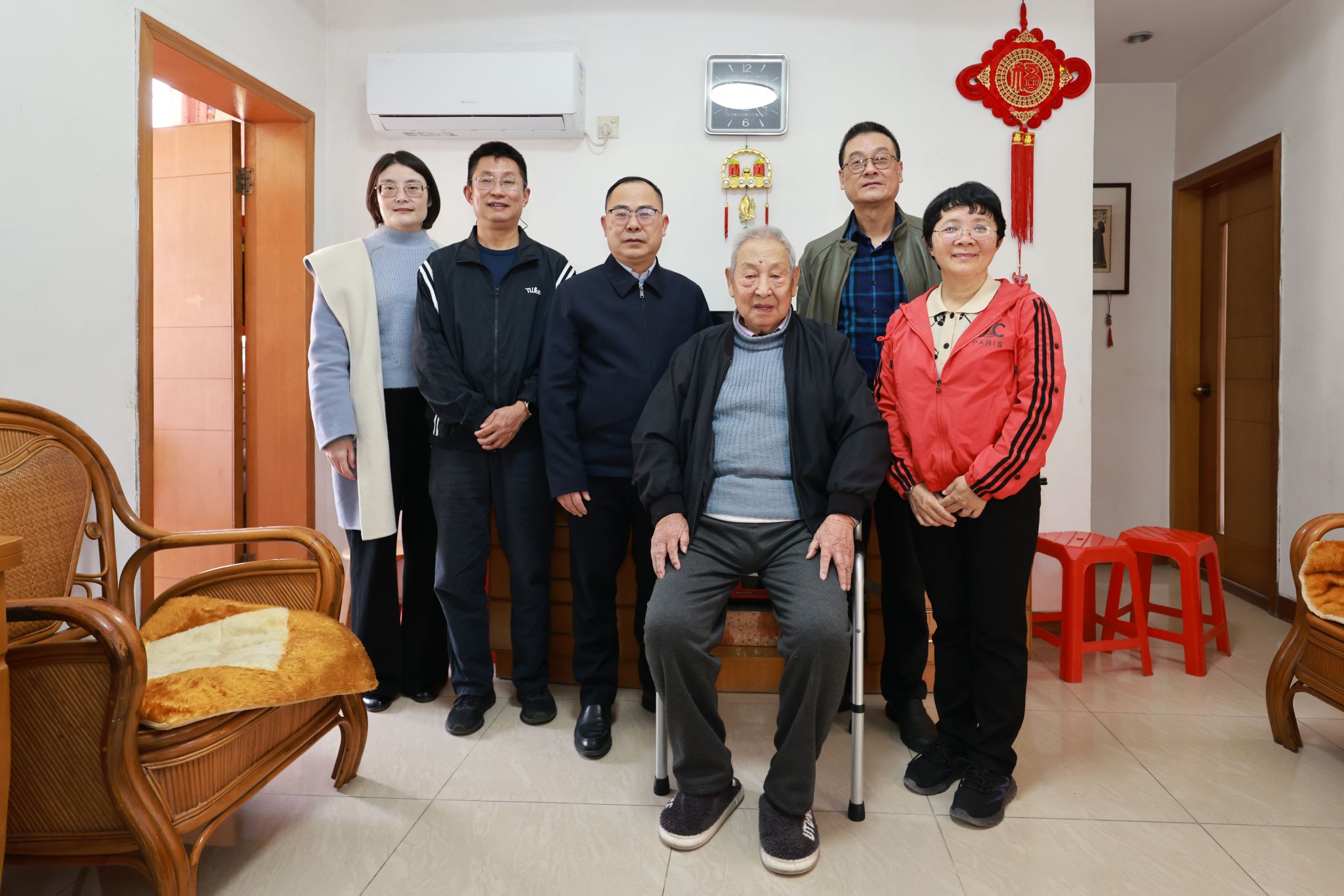 1月22日下午,受beat365中文官方网站校长、农工党省委员会常委王宏斌委托,省委会办公室主任黄涛,学校基层委主委杨忠奇、前主委赵先明等一行前往学校三元里校区,慰问周岱翰、张超良、田传瑶等农工党老党员。他们向老同志们致以新春祝福,送上慰问品和慰问金,并汇报了2024年基层委员会在组织建设方面的成果,让老党员们了解组织的发展动态。