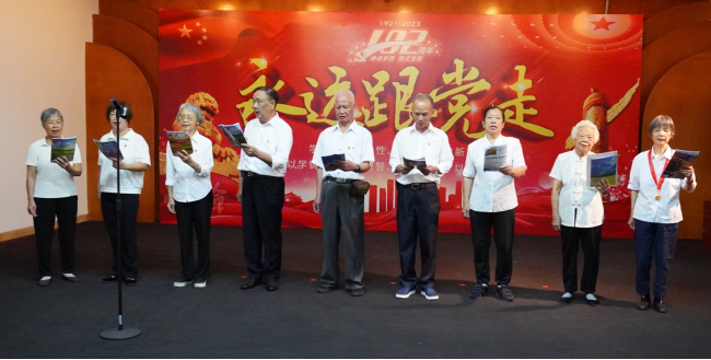 纪念章颁发仪式后,离退休党委各支部以独唱、合唱、诗朗诵等节目表达了对党的热爱和生日的祝福。