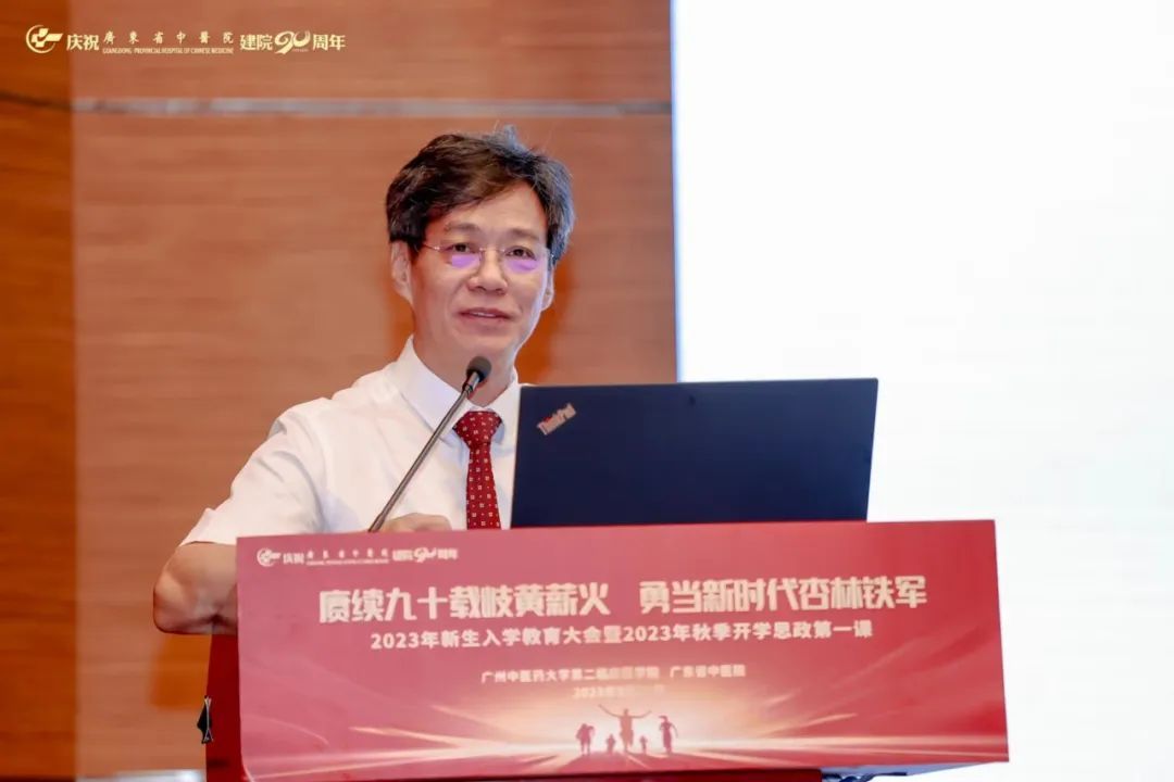 9月23日,beat365中文官方网站第二临床医学院2023年新生入学教育大会暨2023年秋季开学思政第一课在大学城医院学术报告厅举行。学校党委常委、副校长、第二临床医学院(第二附属医院、广东省中医院)院长张忠德讲授“思政第一课”。