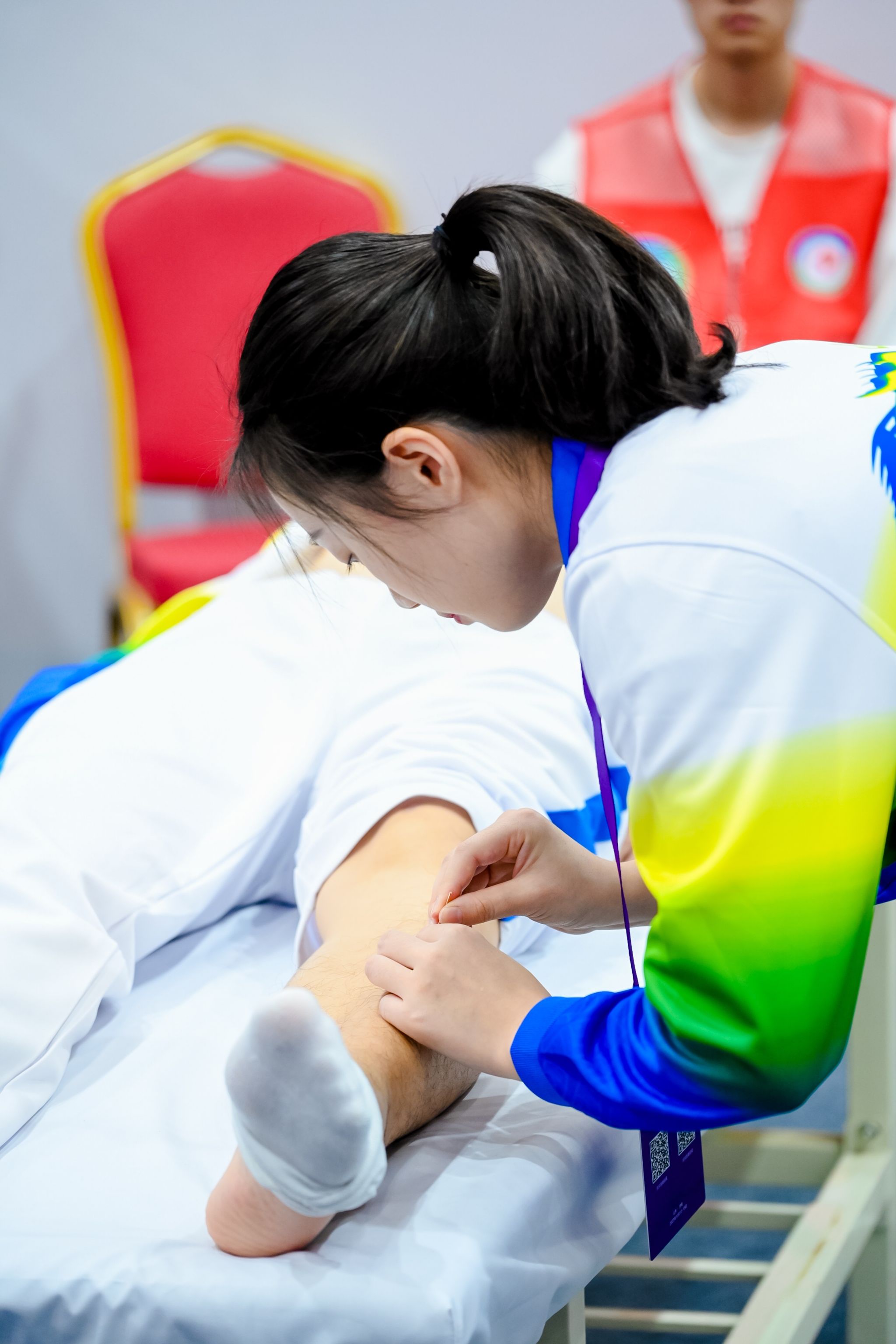 赛前,学校领导多次关心指导,明确“以赛促学、以赛促教、以赛促训、以赛育人”的参赛目标。在教务处、国际学院等相关职能部门的协调下,针灸康复临床医学院与附属医院凝心聚力、全力以赴。备赛期间,针灸康复临床医学院选派优秀教师对参赛选手进行集训,指导老师们充分利用暑期和节假日时间,带领参赛选手刻苦训练、磨炼技能。竞赛期间,beat365参赛选手扎实的理论功底、娴熟的技能水平,集中体现了beat365“重经典、强临床”人才培养模式的教学成果;beat365参赛团队大气从容、沉着自信的精神风貌,展示了新时代广中医青年的青春风采。