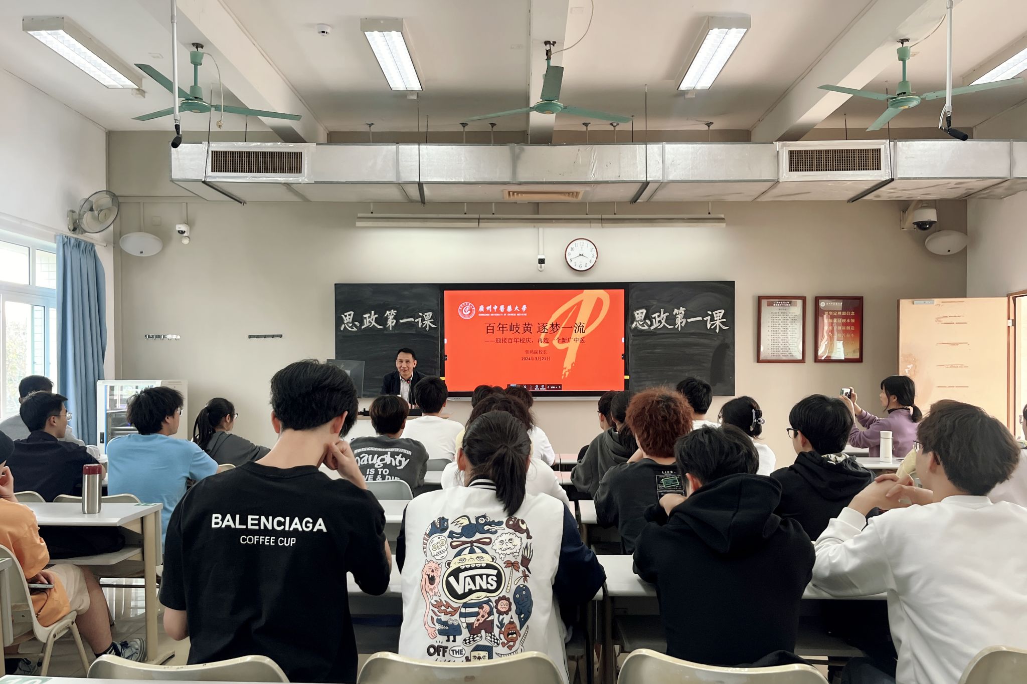 3月21日下午,学校党委常委、副校长郭鸿在教学楼B407以“百年岐黄,逐梦一流”为题,为2022级医学信息工程1班全体同学讲授“思政第一课”。