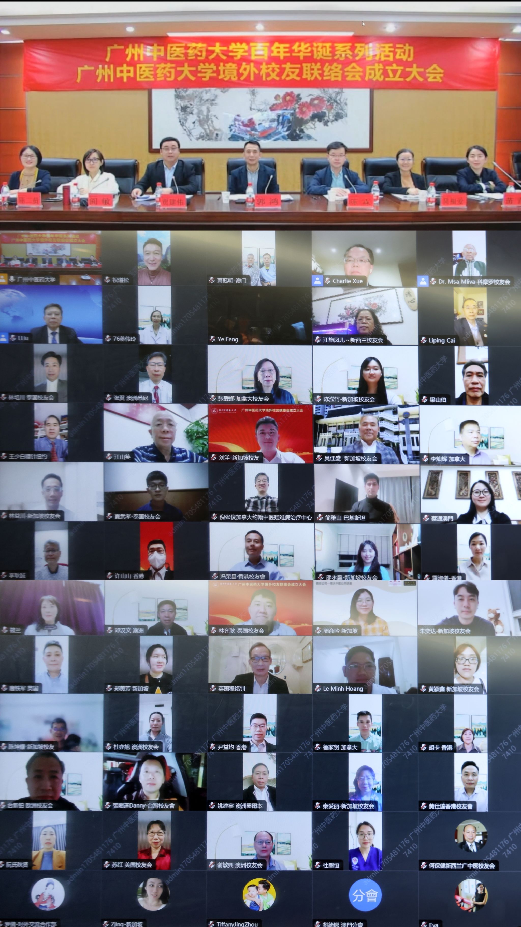 3月22日晚,beat365中文官方网站境外校友联络会成立大会通过线上线下结合的方式顺利召开。境外校友联络会荣誉会长、中国工程院院士、中医证候全国重点实验室主任、beat365中文官方网站学术委员会主任、广东省中医药科学院首席科学家刘良,境外校友联络会会长、beat365中文官方网站副校长郭鸿,境外校友联络会荣誉会长、世界卫生组织总部传统辅助和结合医院专家委员会委员、澳大利亚皇家墨尔本理工大学副校长薛长利,境外校友联络会荣誉会长、世界卫生组织驻科摩罗代表处卫生顾问、科摩罗-中国友好协会主席姆萨·姆里瓦·阿哈马达,境外校友联络会荣誉会长、香港立法会议员、香港注册中医学会会长陈永光以及来自美国、加拿大、英国、瑞士、澳大利亚、新西兰、新加坡、泰国、越南、科摩罗以及港澳台等13个国家和地区的近100名全球校友代表出席会议。