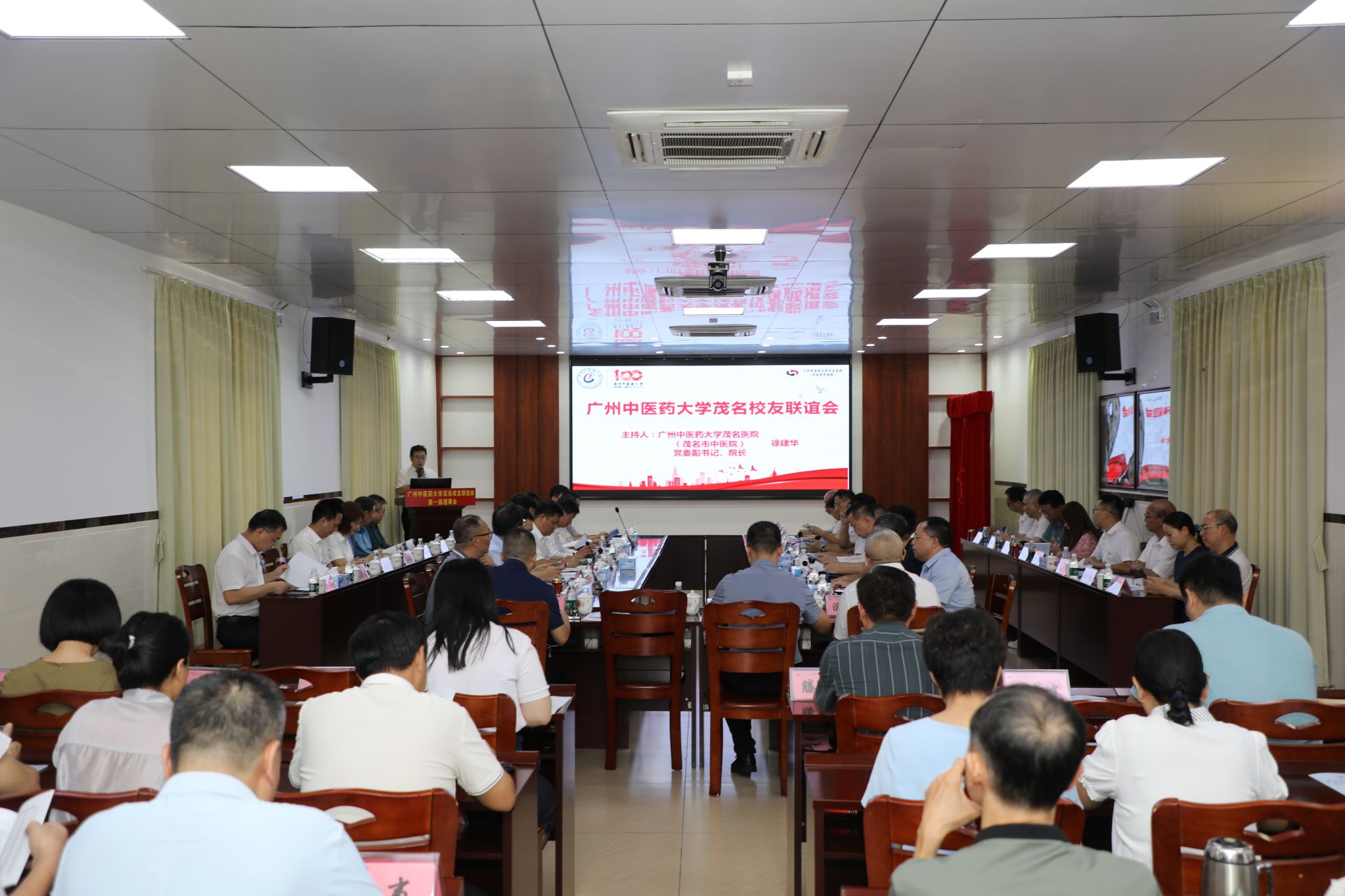 7月27日下午,beat365中文官方网站茂名校友联谊会(联络站)成立大会在beat365中文官方网站茂名医院(茂名市中医院)举行。学校党委副书记邱亚洪,广东省民族医药协会会长、原学校党委常委、副校长梁沛华,茂名市卫生健康局党组书记、局长何泽添,茂名市中医院党委书记黄绵, 茂名市中医院党委副书记、院长徐建华,茂名校友以及学校和医院相关职能部门负责同志参加会议。