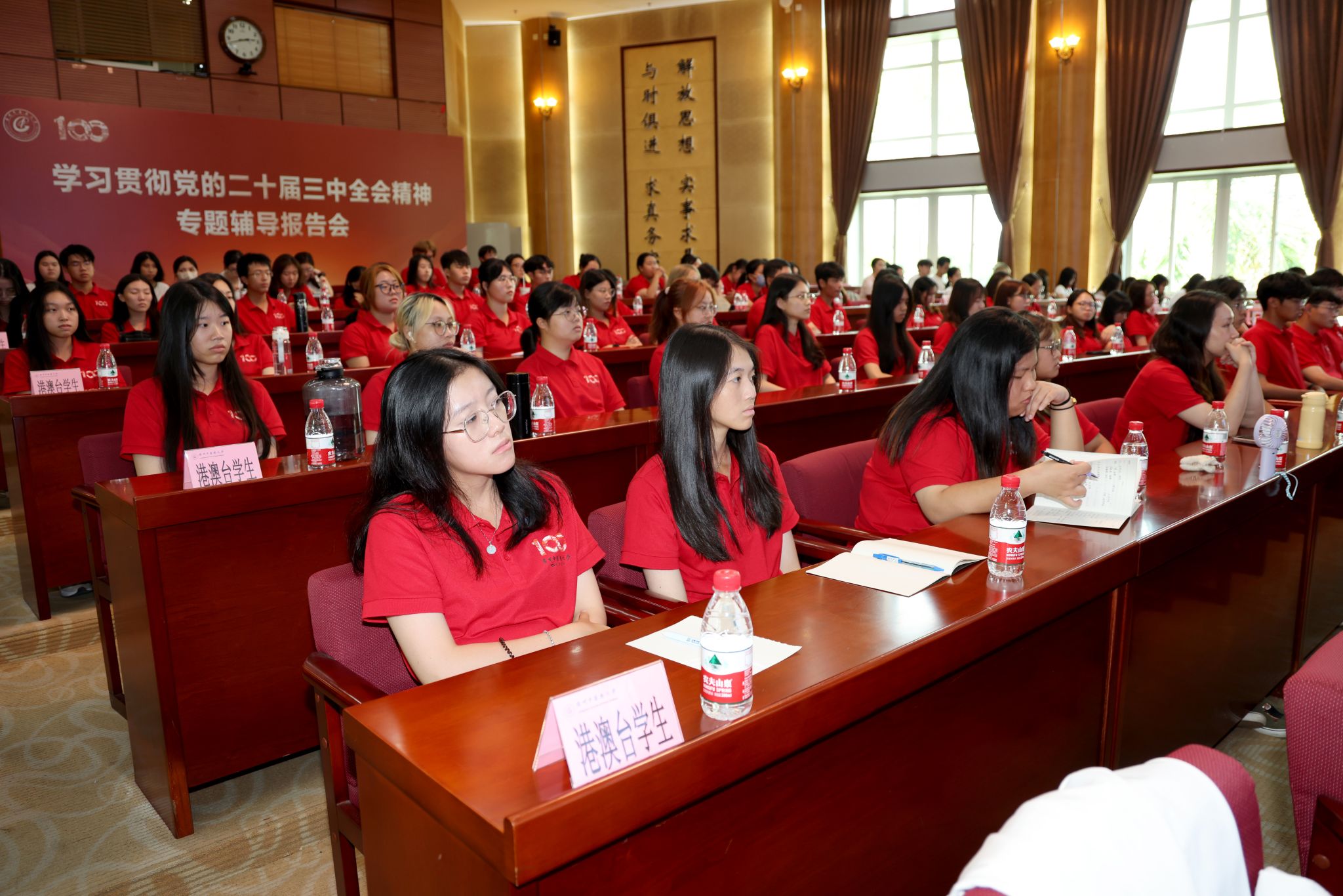 报告会设主会场和分会场。思政课教师代表、港澳台侨学生代表、学生党员代表和青马班学员代表等200余人在现场参加。各单位师生在分会场通过线上方式集中观看报告会。