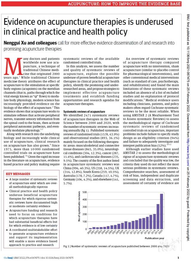 一直以来,中国针灸传承多凭临床经验和师徒传承,缺少科学研究解释疗效产生的机制原理。近年来,虽然全球针灸临床试验研究蓬勃发展,涌现大量针灸临床证据,但是科学界尚缺乏对临床证据的进一步分析和推荐,导致针灸未能在国际舞台上发挥更大作用。
