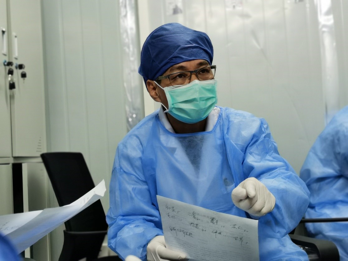 正在为新冠肺炎患者诊断的张忠德(左)。受访者供图