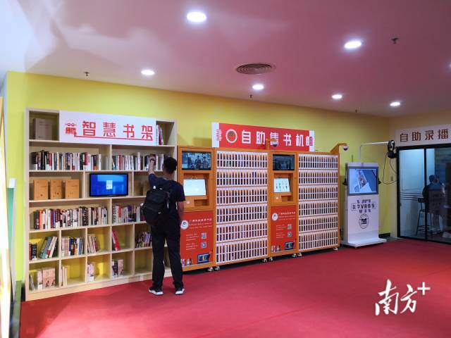 在现场,还有一件“宝贝”吸引了不少学生的关注,它就是“黑科技”感十足的智慧书店。