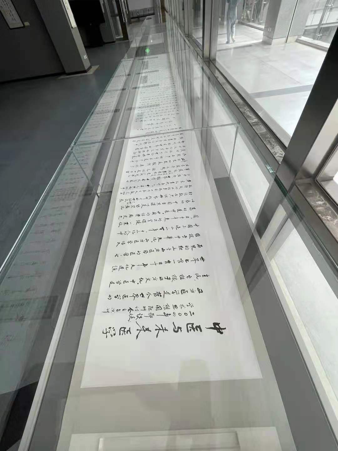 在现场,一幅长达十米的书法作品《中医与未来医学》吸引了诸多参观者。据了解,2004年,邓铁涛学术思想国际研讨会在广州举行,邓铁涛在开幕式上作了“中国与未来医学”的特别演讲,全面阐述了“未来医学”的系列理论观点,描绘了中医学发展的理想愿景。2016年,年过百岁的邓铁涛欣然挥毫,以墨抒情,分多个时段,书写报告全文,最终形成这幅十米长卷。