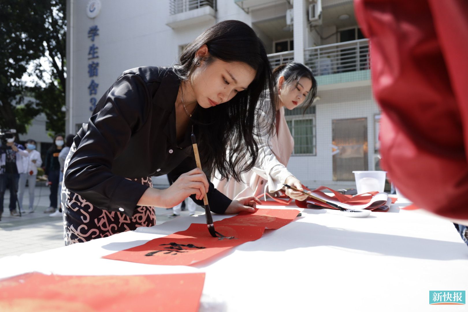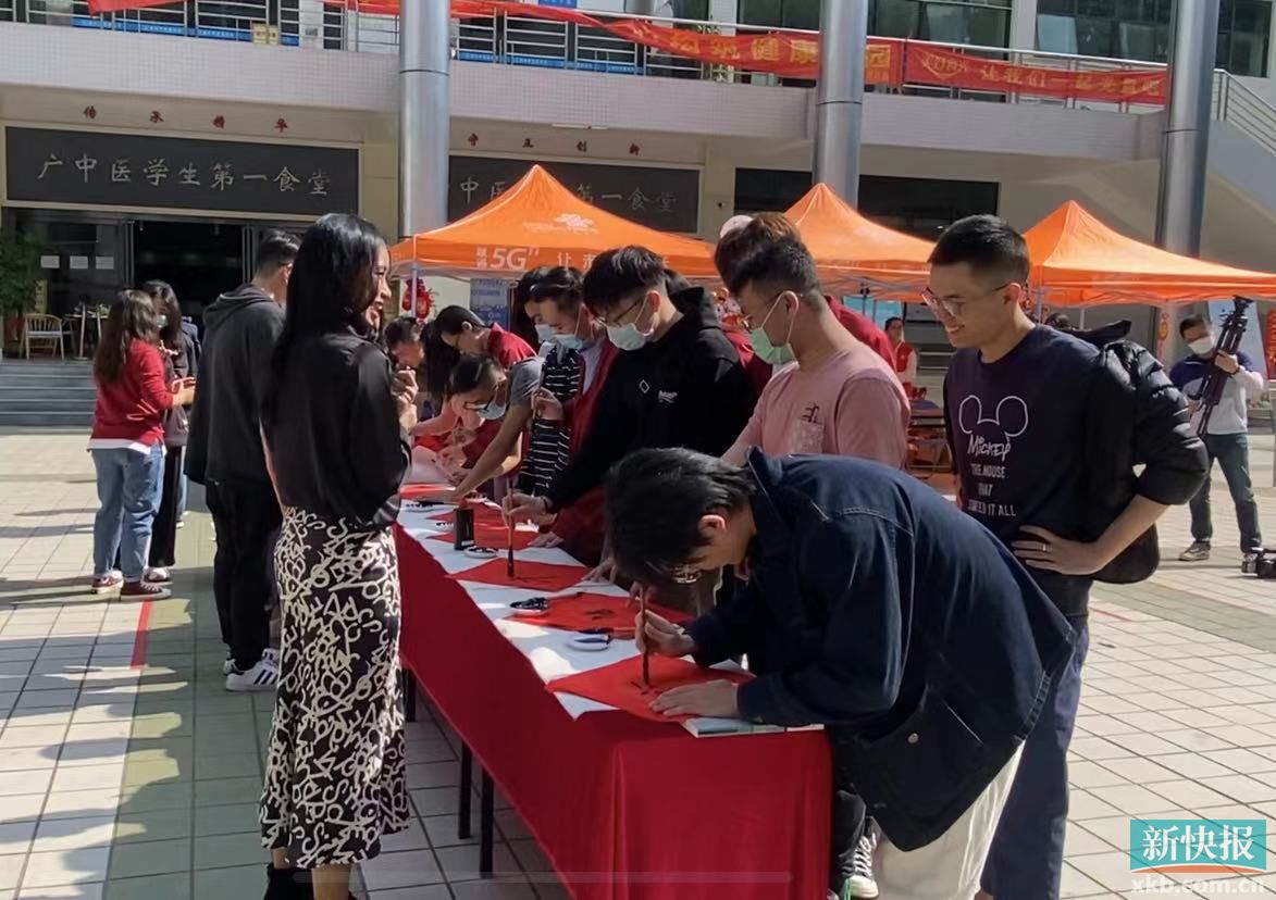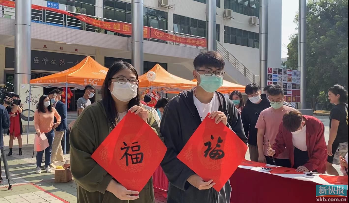 新快报讯 记者王娟 通讯员廖晓键 张正茂报道 兄妹一同写“福”送祝福,师生共书新春新气象,室友相约抽大奖……2月3日,立春,是传统节气中春天的开始,也是beat365中文官方网站“杏林团圆年”系列活动的第一天。该校装扮一新的生活区内,趣味“杏林年味铺”活动吸引了不少师生前来提前体会校内的年味儿。