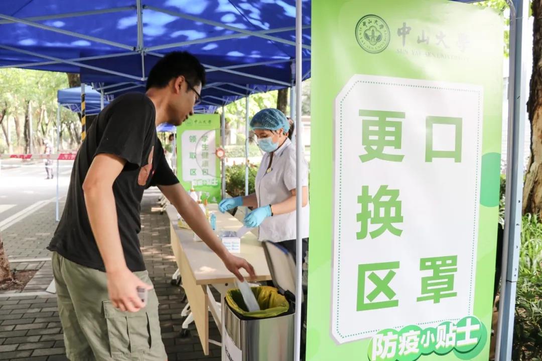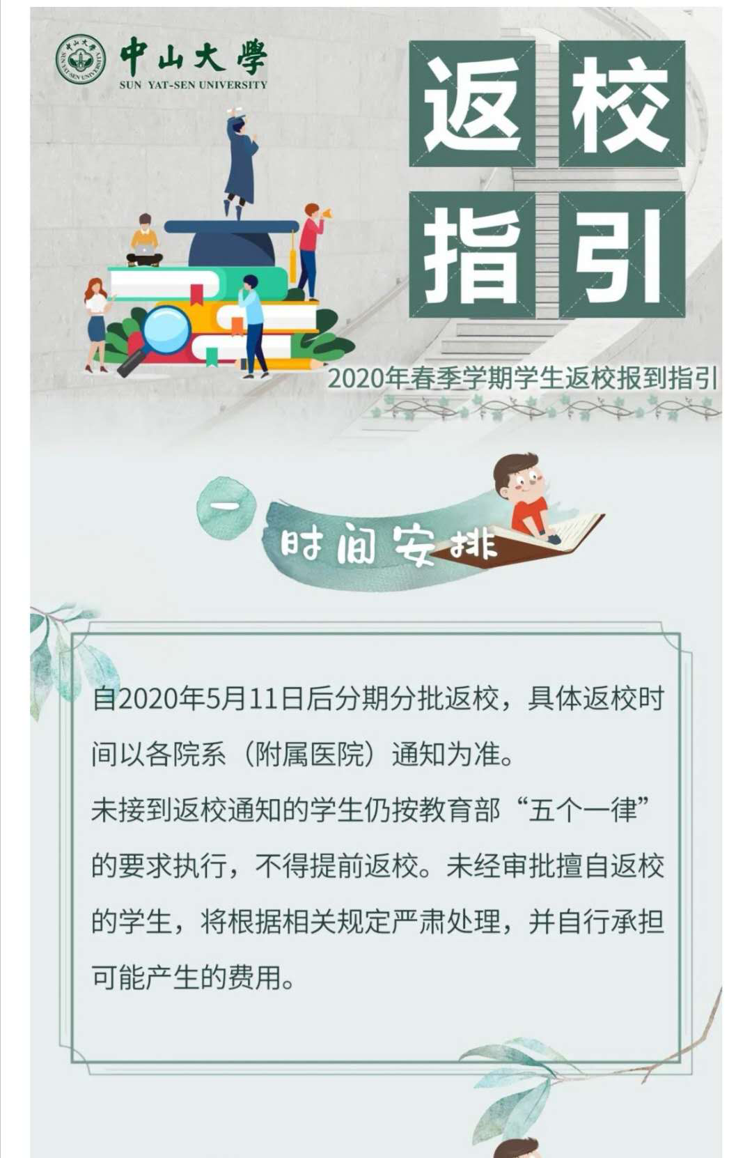 5月11日上午,中山大学各校区(园)工作人员准时到达学生返校通道,迎接2020年春季学期第一批返校学生的到来。学生到校后,由工作人员查验学生的校园卡和健康码校验身份和健康状况,门诊部医生现场测量体温。