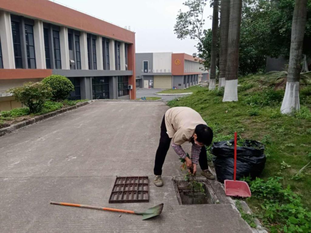 作人员对校内进行全面清洁、消毒,清理卫生死角、沟渠等,只为给师生提供一个整洁安全的校园环境。