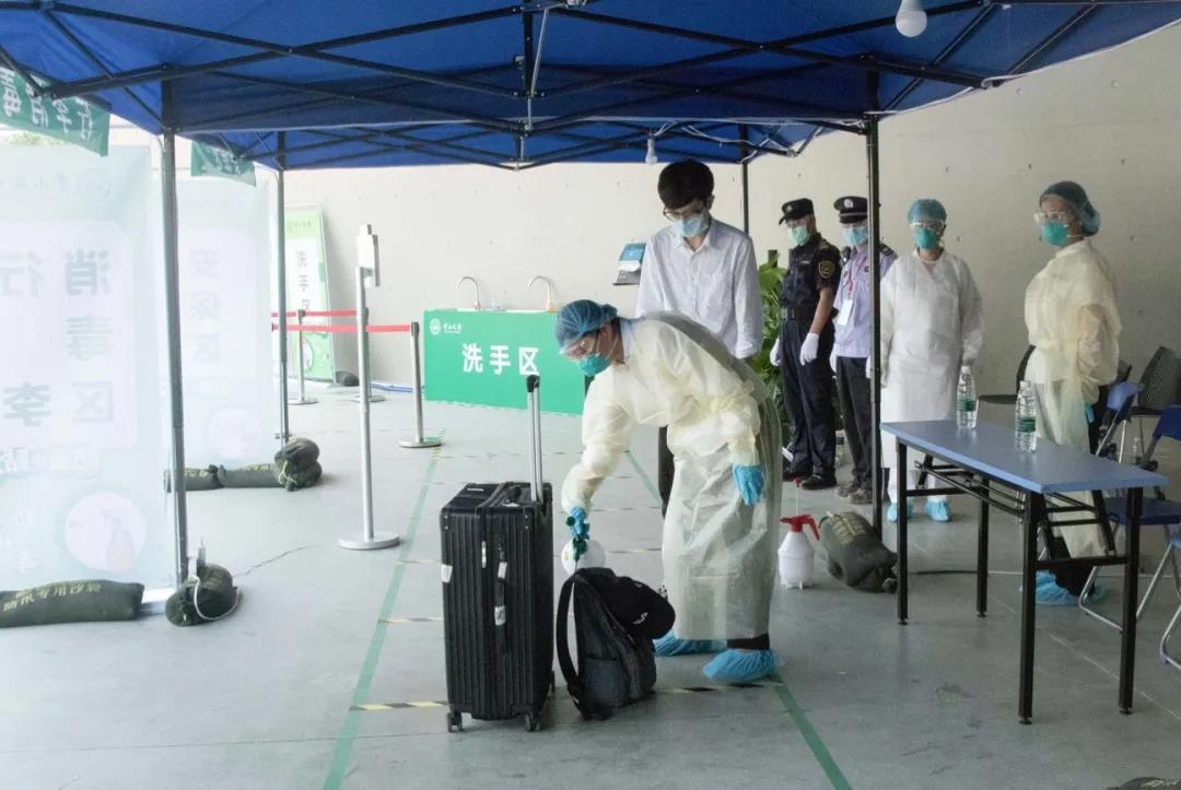 5月11日,暨南大学迎来了首批返校复课的博士毕业生。学校在校门设置返校学生检测通道、消毒点、测温点和隔离等候区。