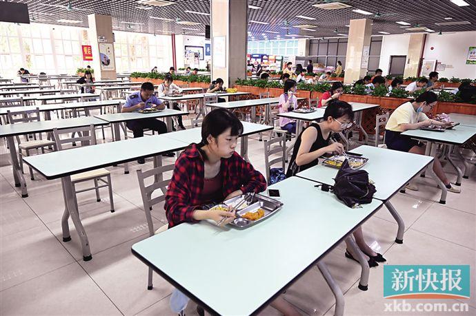 ■广州医科大学学生在食堂就餐,实行一人一桌、错峰就餐。